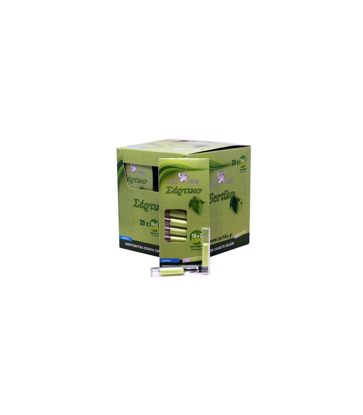 Τα ΠΙΠΑΚΙΑ ΣΕΡΤΙΚΟ ΑΠΟΡΟΦΗΤΙΚΟ ΚΑΝΟΝΙΚΟ 8mm (10+2 πίπες) διαθέτουν πράσινο φίλτρο με φυτικές ιδιότητες και είναι ιδανικά για το κανονικό ή στριφτό σας τσιγάρο. Μπορείτε να τα χρησιμοποιήσετε για 10-15 τσιγάρα.