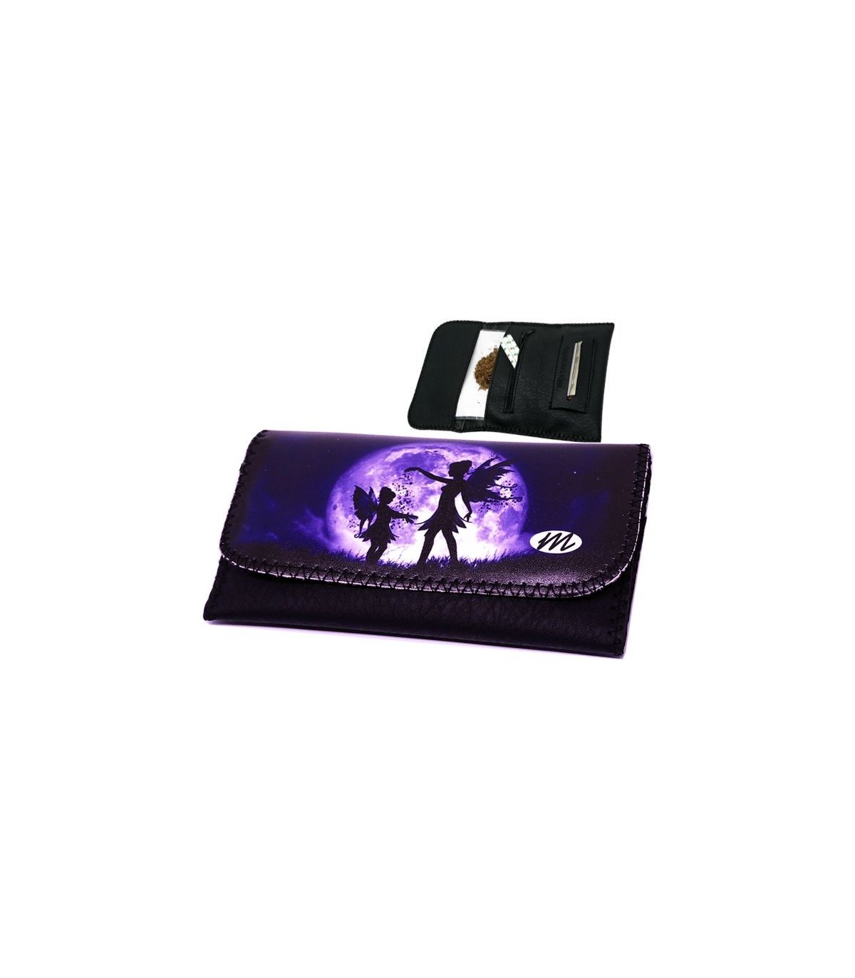 5Η γυναικεία καπνοθήκη MONTE 0111 ΝΕΡΑΪΔΕΣ ΣΤΟ ΦΕΓΓΑΡΙ, έχει χρώμα μαύρο, διπλώνει στα τρία και είναι κατασκευασμένη από τεχνόδερμα PU (Leather). Μπορεί να δεχτεί σακουλάκι καπνού μέχρι 30gr ή χύμα καπνό και διαθέτει θέσεις για χαρτάκια φιλτράκια. Κλείνει με τέσσερις εσωτερικούς μαγνήτες.