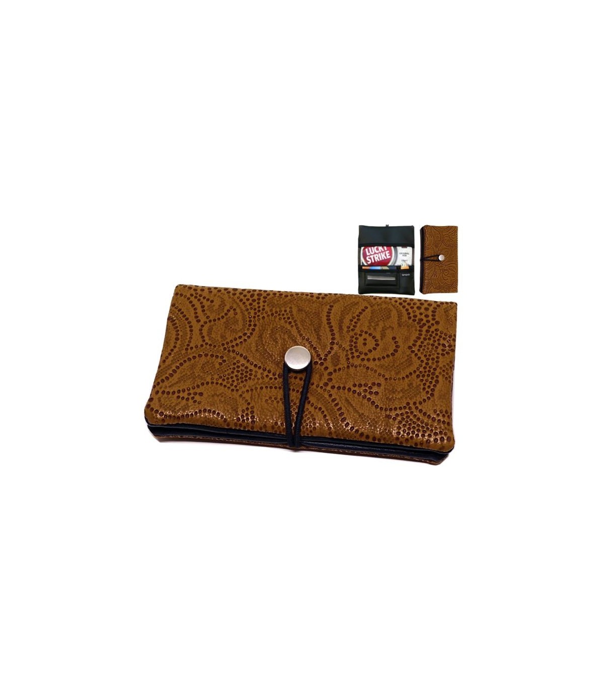 Η καπνοθήκη SIMONA 997 135 διαθέτει ανάγλυφο σχέδιο με καφέ χρώμα και είναι κατασκευασμένη από τεχνόδερμα . Μπορεί να δεχτεί μόνο σακουλάκι καπνού και διαθέτει θέσεις για χαρτάκια φιλτράκια και αναπτήρα. Κλείνει με ανθεκτικό λαστιχάκι.