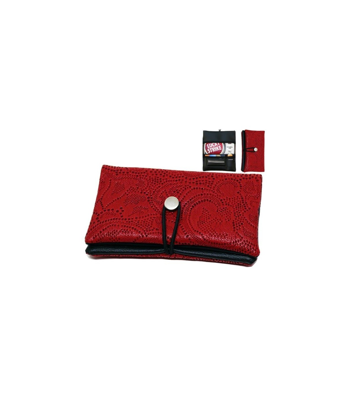 Η καπνοθήκη SIMONA 997 135 έχει χρώμα κόκκινο με διάτρητη επιφάνεια. Είναι κατασκευασμένη από τεχνόδερμα εξωτερικά και ύφασμα εσωτερικά. Μπορεί να δεχτεί μόνο σακουλάκι καπνού και διαθέτει θέσεις για χαρτάκια φιλτράκια και αναπτήρα. Κλείνει με ανθεκτικό λαστιχάκι.