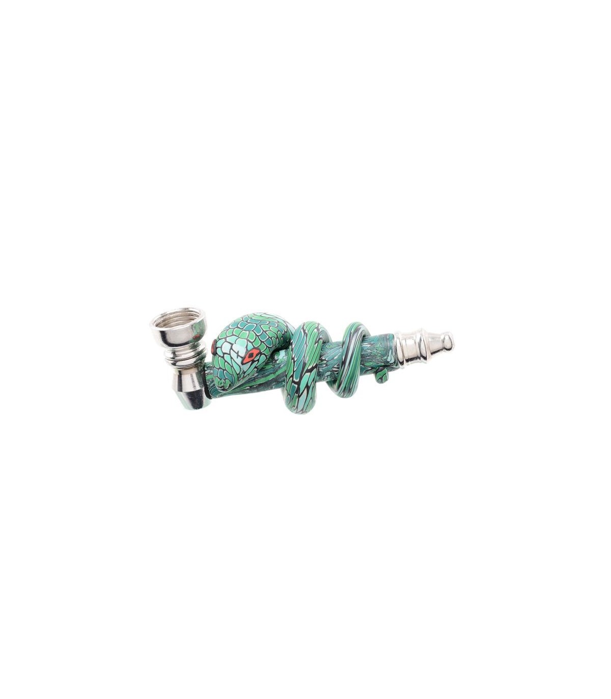 Η Μεταλλική Πίπα με σίτα Atomic Pipe Snake 10cm έχει τυλιγμένο ένα φίδι γύρω της