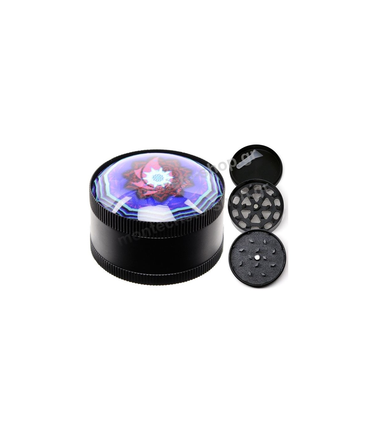 Ο τρίφτης καπνού Atomic Metal Grinder 3D Psychedelic 50mm 0212470NT "A" (3 parts) είναι ένα grinder με ψυχεδελικό σχέδιο το οποίο είναι μέσα σε μπομπέ σμάλτο, είναι κατασκευασμένο από μέταλλο και διαθέτει 3 πατώματα (μέρη)
