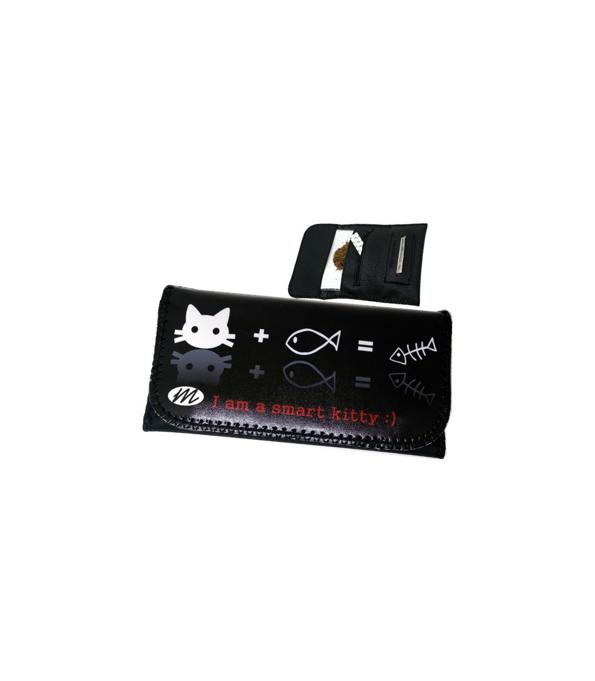 Η καπνοθήκη MONTE 0173 SMART KITTY έχει μεγάλο μέγεθος, διπλώνει στα τρία και είναι κατασκευασμένη από τεχνόδερμα PU (Leather). Μπορεί να δεχτεί σακουλάκι καπνού μέχρι 30gr ή χύμα καπνό και διαθέτει θέσεις για χαρτάκια φιλτράκια. Κλείνει με τέσσερις εσωτερικούς μαγνήτες.