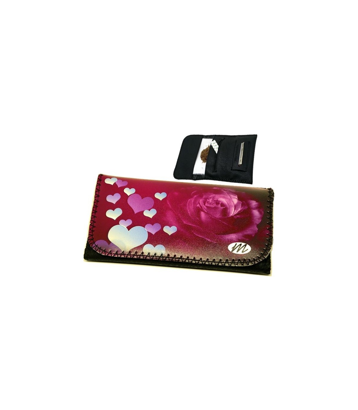 Η καπνοθήκη MONTE 0177 ROSE & HEARTS έχει μεγάλο μέγεθος, διπλώνει στα τρία και είναι κατασκευασμένη από τεχνόδερμα PU (Leather). Μπορεί να δεχτεί σακουλάκι καπνού μέχρι 30gr ή χύμα καπνό και διαθέτει θέσεις για χαρτάκια φιλτράκια. Κλείνει με τέσσερις εσωτερικούς μαγνήτες.