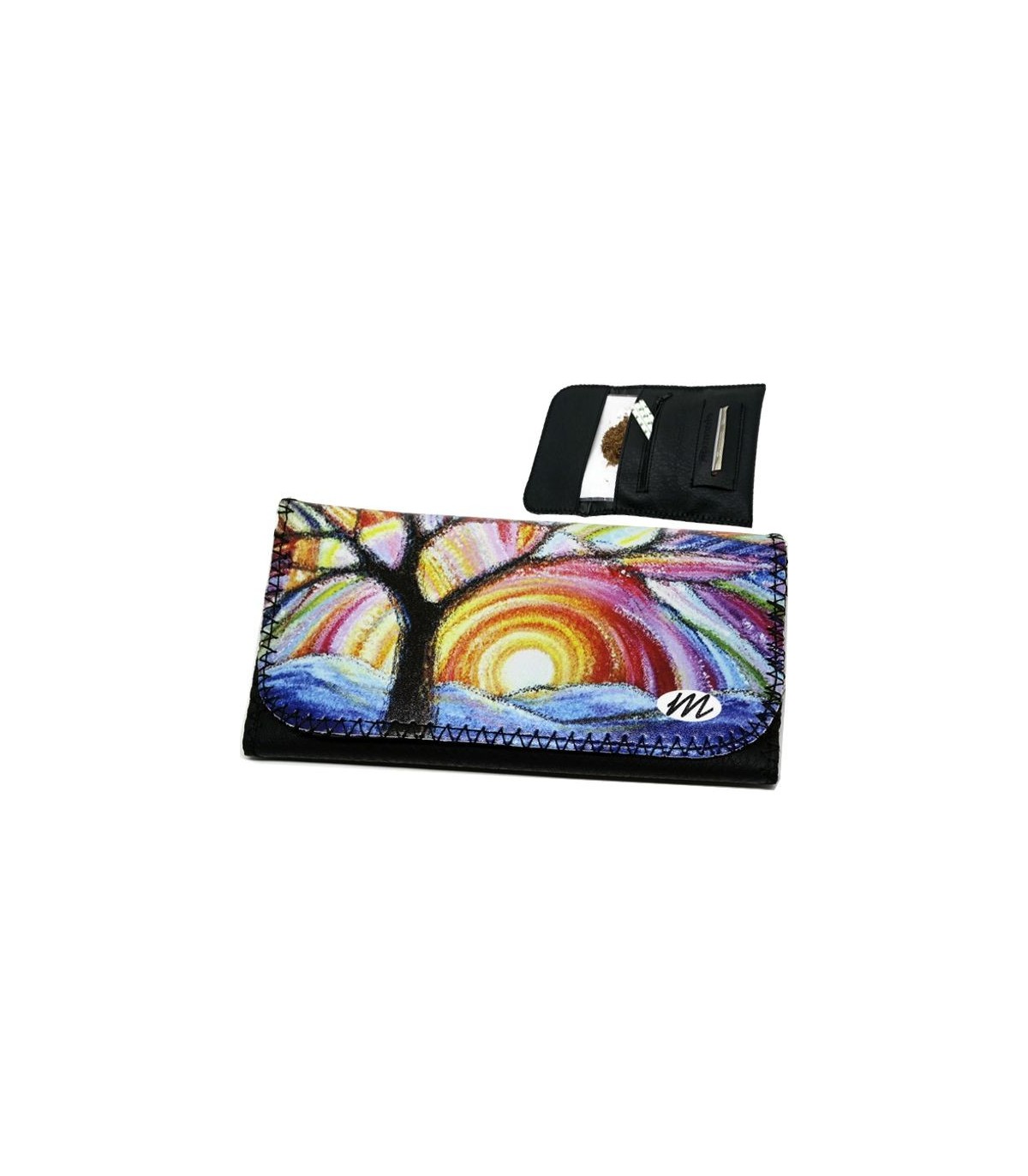 Η καπνοθήκη MONTE 0184 SUNSET PAINTING έχει μεγάλο μέγεθος, διπλώνει στα τρία και είναι κατασκευασμένη από τεχνόδερμα PU (Leather). Μπορεί να δεχτεί σακουλάκι καπνού μέχρι 30gr ή χύμα καπνό και διαθέτει θέσεις για χαρτάκια φιλτράκια. Κλείνει με τέσσερις εσωτερικούς μαγνήτες.