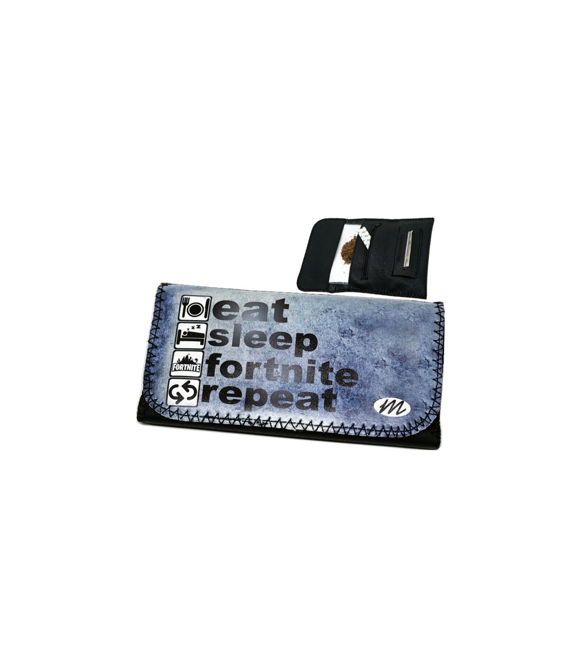 Η καπνοθήκη MONTE 0191 FORTNITE έχει μεγάλο μέγεθος, διπλώνει στα τρία και είναι κατασκευασμένη από τεχνόδερμα PU (Leather). Μπορεί να δεχτεί σακουλάκι καπνού μέχρι 30gr ή χύμα καπνό και διαθέτει θέσεις για χαρτάκια φιλτράκια. Κλείνει με τέσσερις εσωτερικούς μαγνήτες.