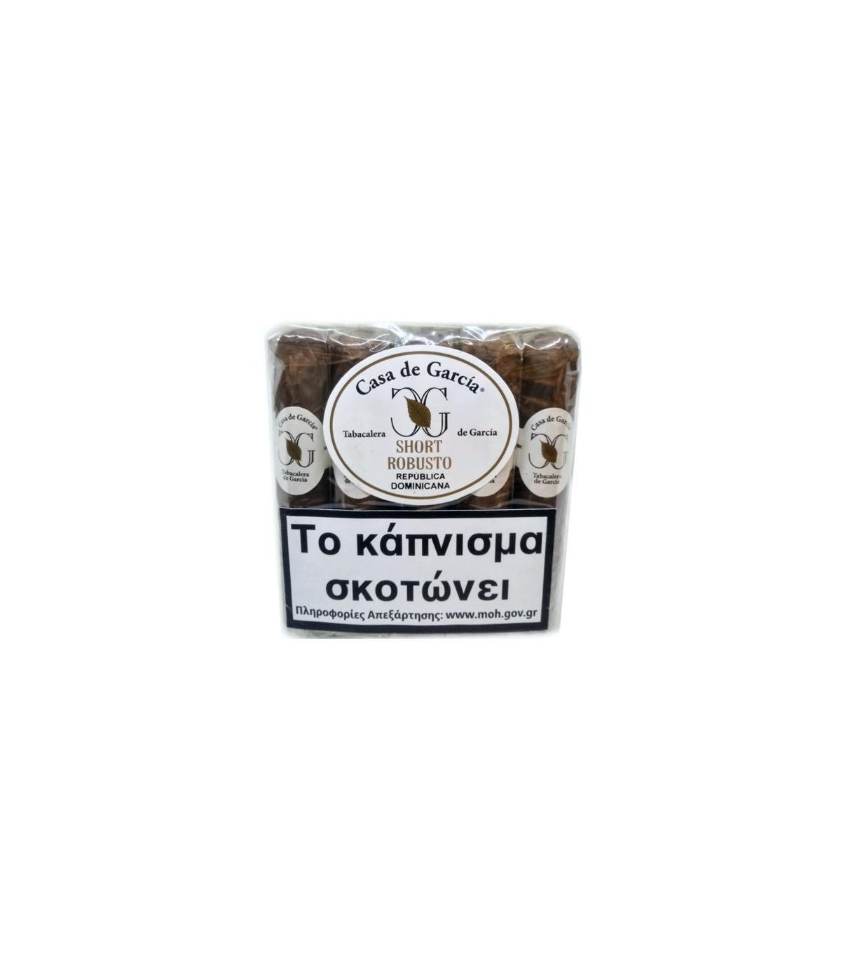 Το εξαιρετικής ποιότητας πούρο Casa de Garcia Short Robusto κατασκευάζεται στην Δομινικανή Δημοκρατία. Η συσκευασία περιέχει 10 πούρα.