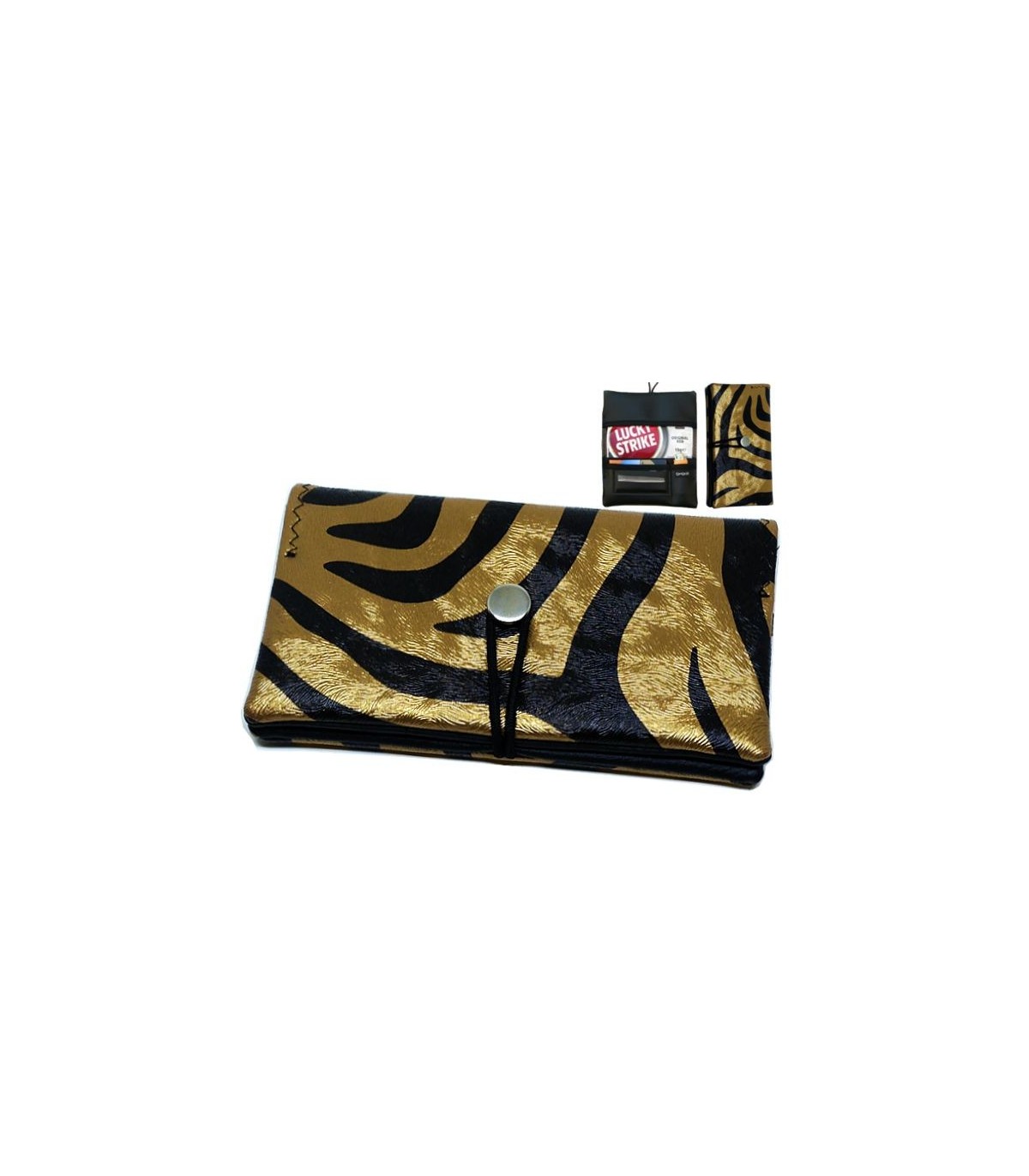 Η καπνοθήκη SIMONA 997 159 απευθύνεται σε γυναικείο κοινό, αλλάζει χρώματα στο φως, έχει χρώμα καφέ, είναι ανάγλυφη με τα χρώματα της τίγρης και είναι κατασκευασμένη από τύπο δέρματος PVC το οποίο προσδίδει ρεαλισμό στα σχέδια και στα χρώματα της καπνοσακούλας. Είναι μεγάλη σε μέγεθος και μπορεί να χωρέσει έναν καπνό 30gr, μπορεί να δεχτεί μόνο σακουλάκι καπνού και διαθέτει θέσεις για χαρτάκια φιλτράκια και αναπτήρα. Κλείνει με ανθεκτικό λαστιχάκι.