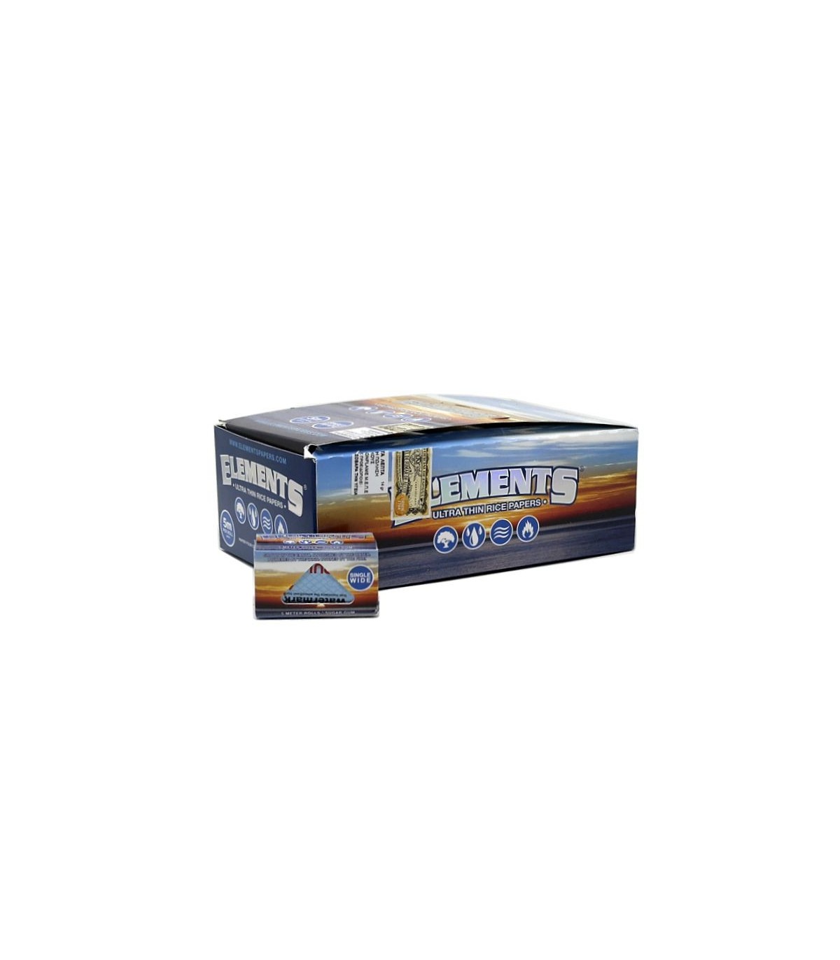 Μέγεθος 40mm x 5 μέτραΚαύση άκρως βραδύκαυστηΤο κάθε φύλλο περιέχει μοναδικό υδατογράφημα CRISS CROSS για ομοιόμορφη καύσηΤα ρολά ELEMENTS καίγονται αφήνοντας μηδενική στάχτη, εκτός μιας μικρής γραμμής που προκαλείται από την καύση της ζάχαρης που μετατρέπεται σε καραμέλα.Κουτί των 24