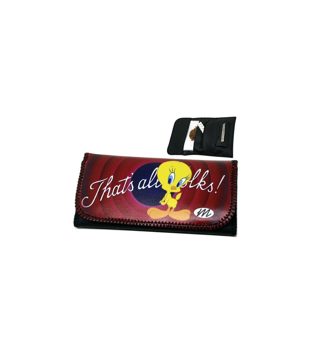 Η καπνοθήκη MONTE 0211 ΤΟΥΙΤΥ έχει μεγάλο μέγεθος, διπλώνει στα τρία και είναι κατασκευασμένη από τεχνόδερμα PU (Leather). Μπορεί να δεχτεί σακουλάκι καπνού μέχρι 30gr ή χύμα καπνό και διαθέτει θέσεις για χαρτάκια φιλτράκια. Κλείνει με τέσσερις εσωτερικούς μαγνήτες.