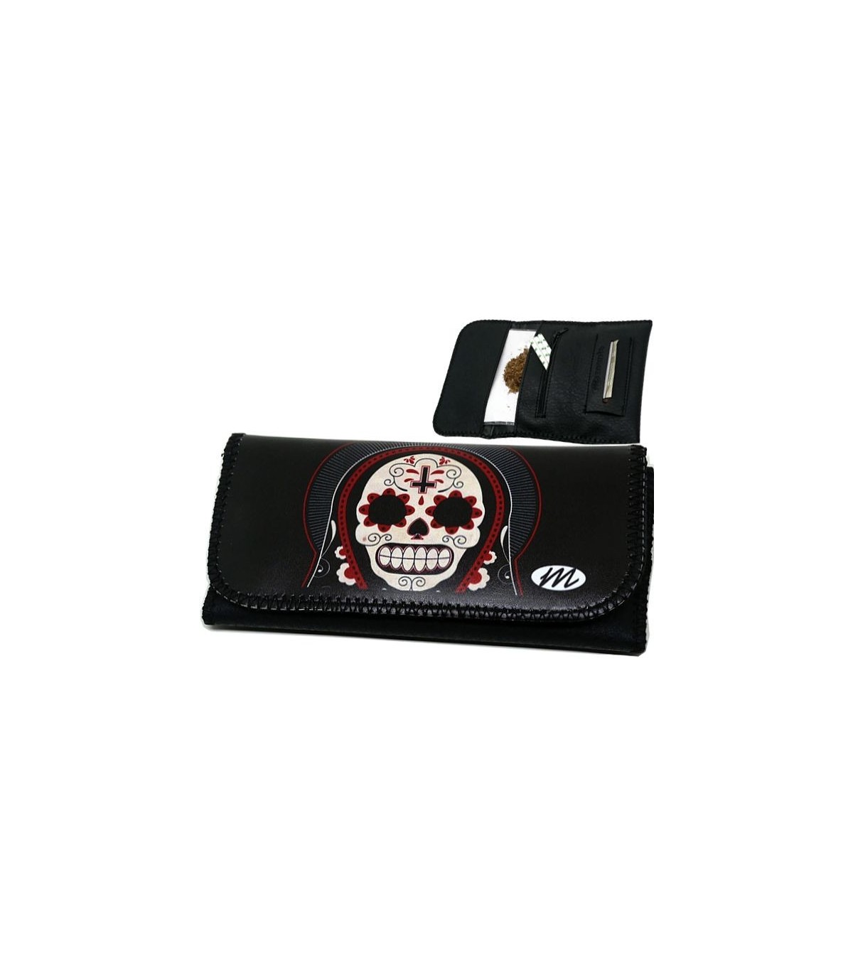 Η καπνοθήκη MONTE 0231 TATTOO SKULL έχει μεγάλο μέγεθος, διπλώνει στα τρία και είναι κατασκευασμένη από τεχνόδερμα PU (Leather). Μπορεί να δεχτεί σακουλάκι καπνού μέχρι 30gr ή χύμα καπνό και διαθέτει θέσεις για χαρτάκια φιλτράκια. Κλείνει με τέσσερις εσωτερικούς μαγνήτες.