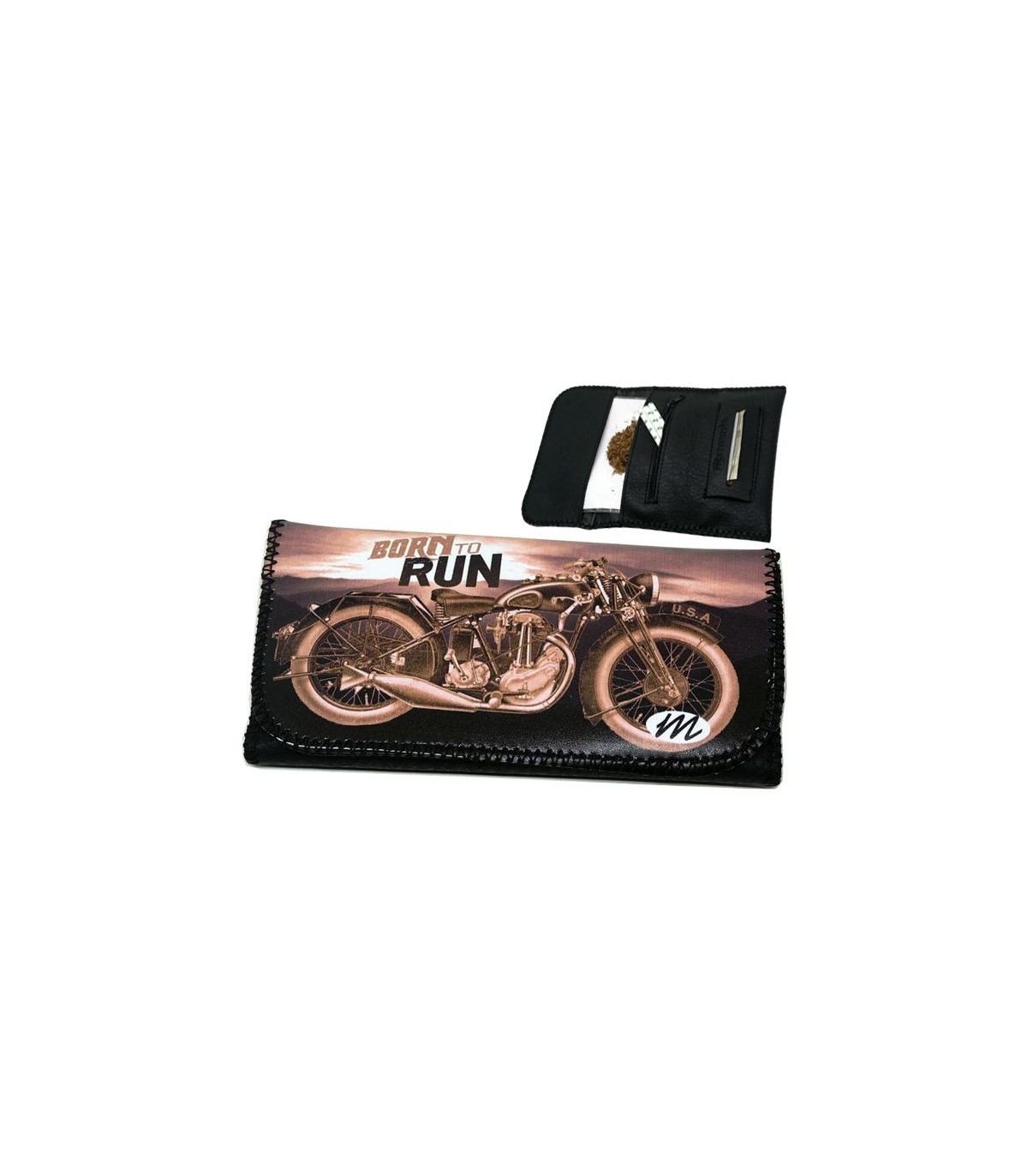 Η καπνοθήκη MONTE 0228 BORN TO RUN έχει μεγάλο μέγεθος, διπλώνει στα τρία και είναι κατασκευασμένη από τεχνόδερμα PU (Leather). Μπορεί να δεχτεί σακουλάκι καπνού μέχρι 30gr ή χύμα καπνό και διαθέτει θέσεις για χαρτάκια φιλτράκια. Κλείνει με τέσσερις εσωτερικούς μαγνήτες.