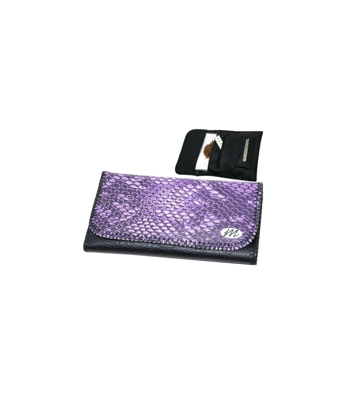 Η καπνοθήκη MONTE 0274 PURPLE SNAKE έχει μεγάλο μέγεθος, διπλώνει στα τρία και είναι κατασκευασμένη από τεχνόδερμα PU (Leather). Μπορεί να δεχτεί σακουλάκι καπνού μέχρι 30gr ή χύμα καπνό και διαθέτει θέσεις για χαρτάκια φιλτράκια. Κλείνει με τέσσερις εσωτερικούς μαγνήτες.