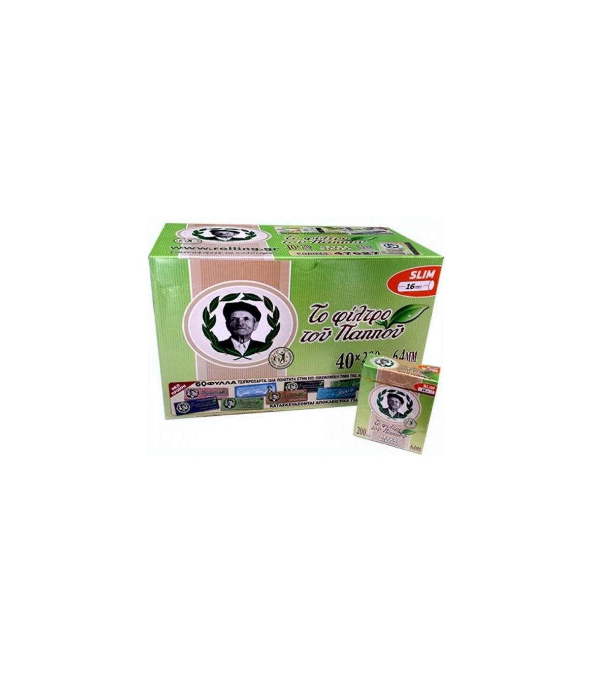 Το φίλτρο του παππού 47627 έχει πάχος λίγο μεγαλύτερο από το κλασικό Slim και συγκεκριμένα 6.4mm. Διαθέτει μακρύ φίλτρο 16mm και περιέχει 200 τεμάχια.