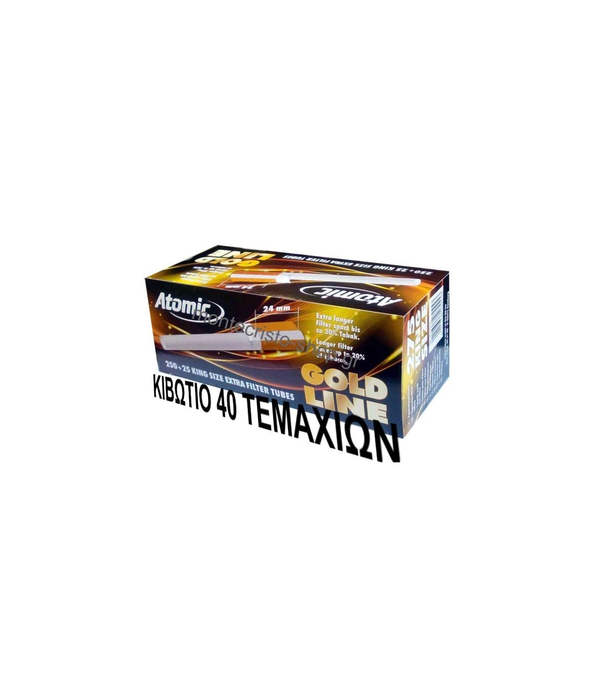 Οικονομική συσκευασία χονδρικής με 40 άδεια τσιγάρα Atomic Gold Line Tubes.