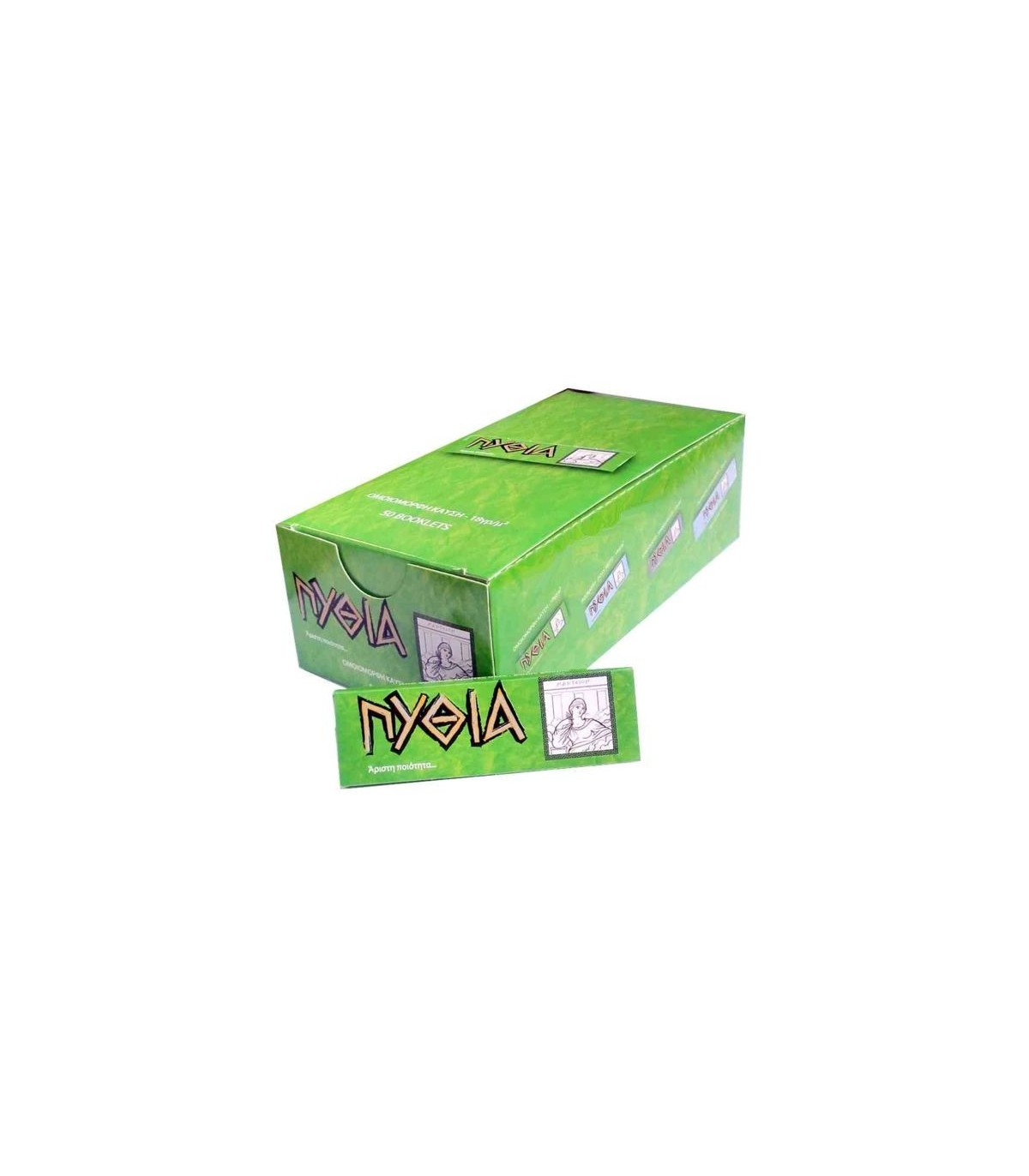 Τα τσιγαρόχαρτα ΠΥΘΙΑ πράσινα έχουν βάρος 18gr/m2 και διαστάσεις 35mm X 70mm