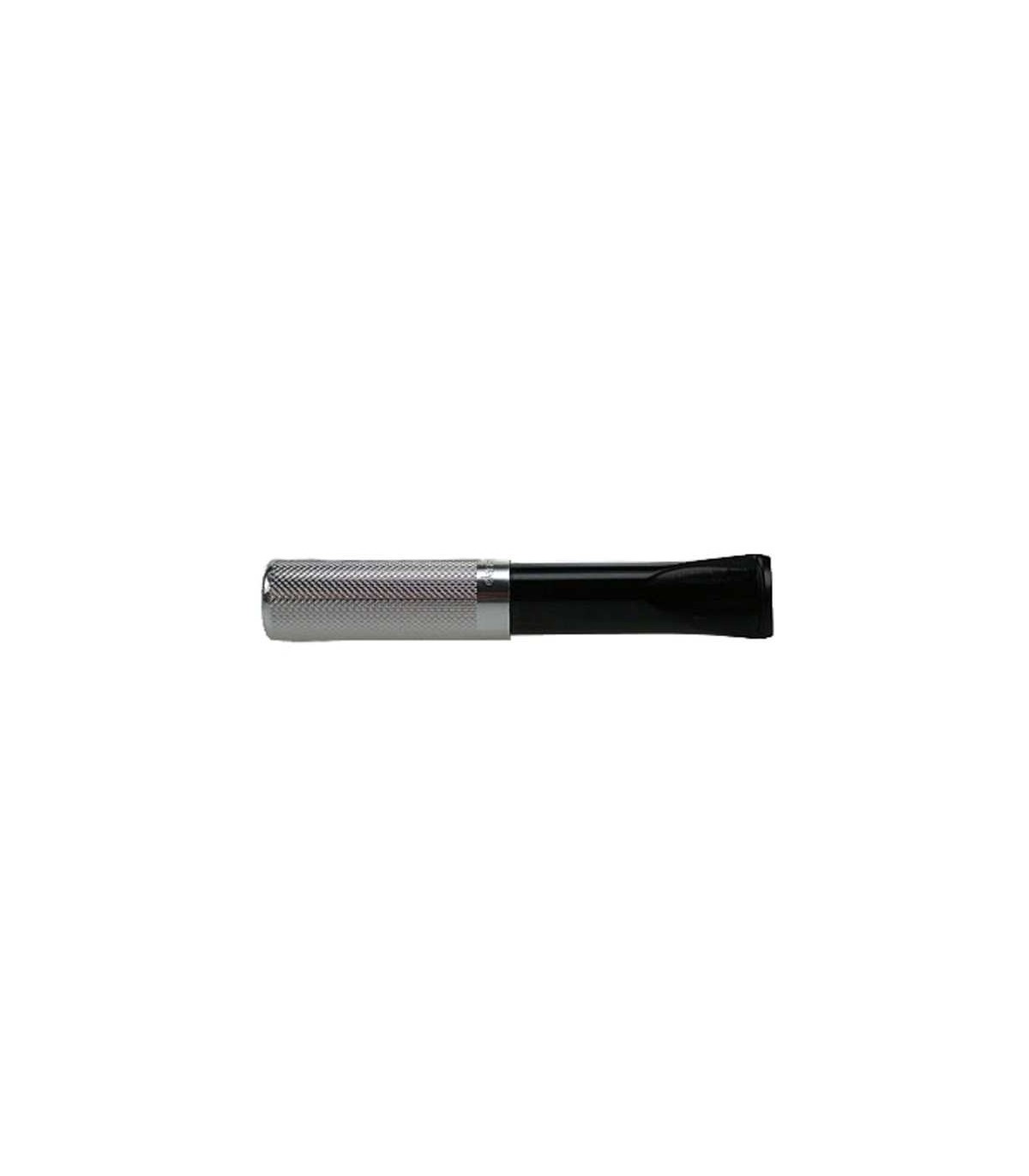 Η πίπα τσιγάρου DENICOTEA 20271 έχει μαύρο χρώμα, ασημί με πτυχώσεις μεταλλικό επιστόμιο και είναι φτιαγμένη από ανθεκτικό πυρίμαχο ακρυλικό υλικό.