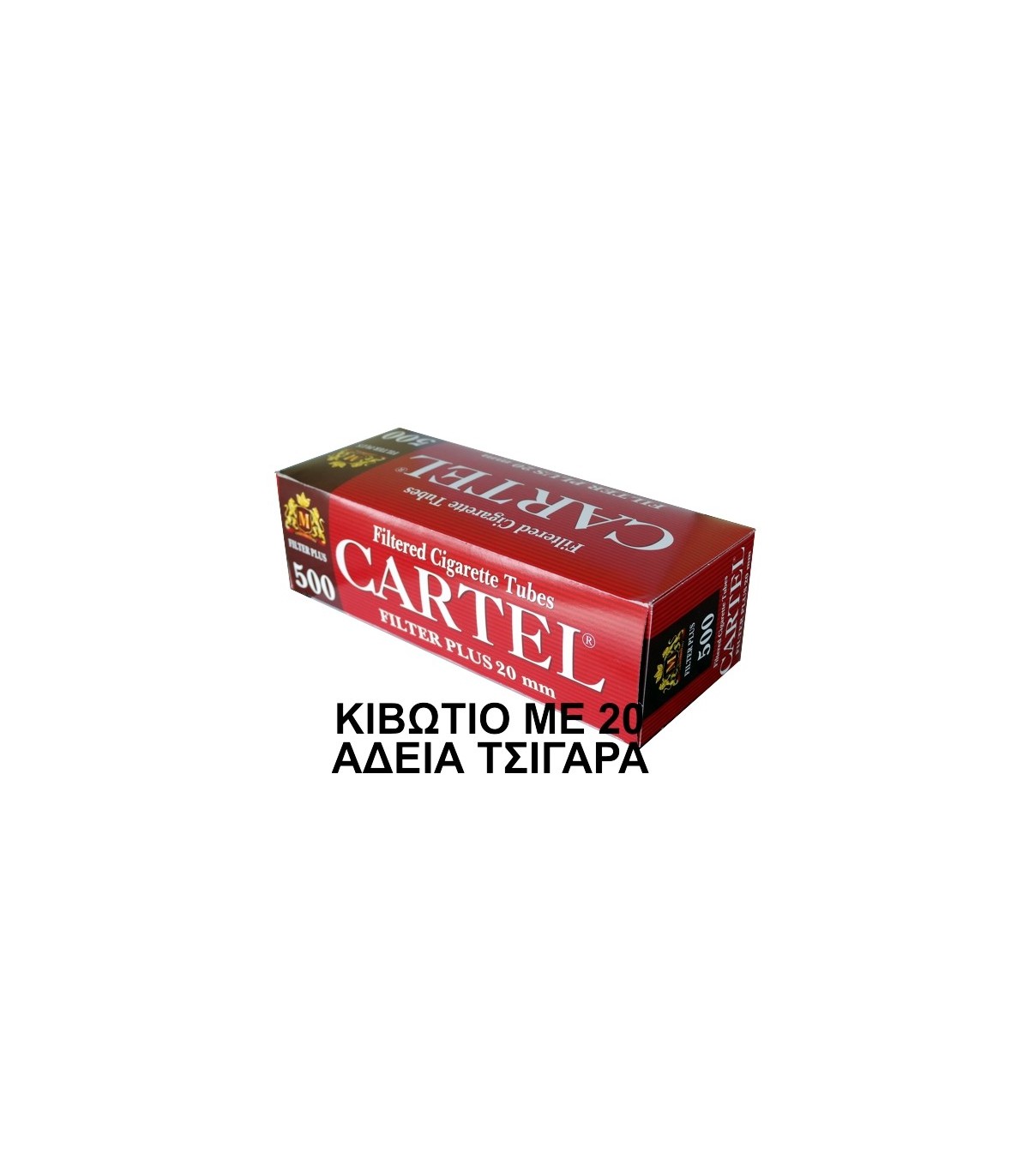 Τα άδεια τσιγάρα CARTEL 500 FILTER PLUS 20mm είναι κανονικά σε μέγεθος KING SIZE τσιγαροσωλήνες με ενισχυμένο μακρύτερο εσωτερικά φίλτρο. Υπάρχουν σωλήνες Cartel και με ακόμη μακρύτερο φίλτρο που όμως αρκετοί καπνιστές τους βρίσκουν υπερβολικούς.