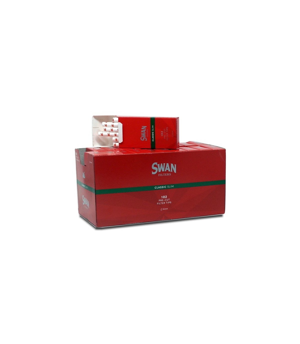 Τα φιλτράκια Swan Κόκκινο 6mm διαθέτουν 102 βαμβακερά φιλτράκια διαμέτρου 6mm, μέσα σε σωλήνα από σελοφάν και έχουν κατακτήσει τις καπνιστικές συνήθειες των καπνιστών που αναζητούν μια βολική συσκευασία η οποία διατηρεί καθαρά και στην θέση τους όλα τα φιλτράκια μέχρι το τελευταίο.