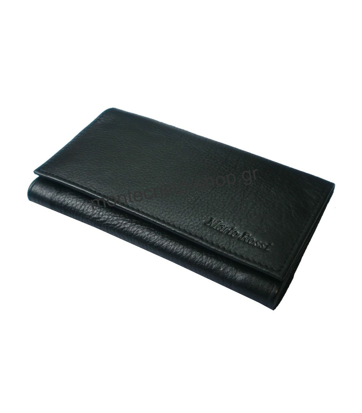 Καπνοσακούλα, γνήσιο δέρμα MARIO ROSSI μαύρη μεγαλη, διπλό άνοιγμα