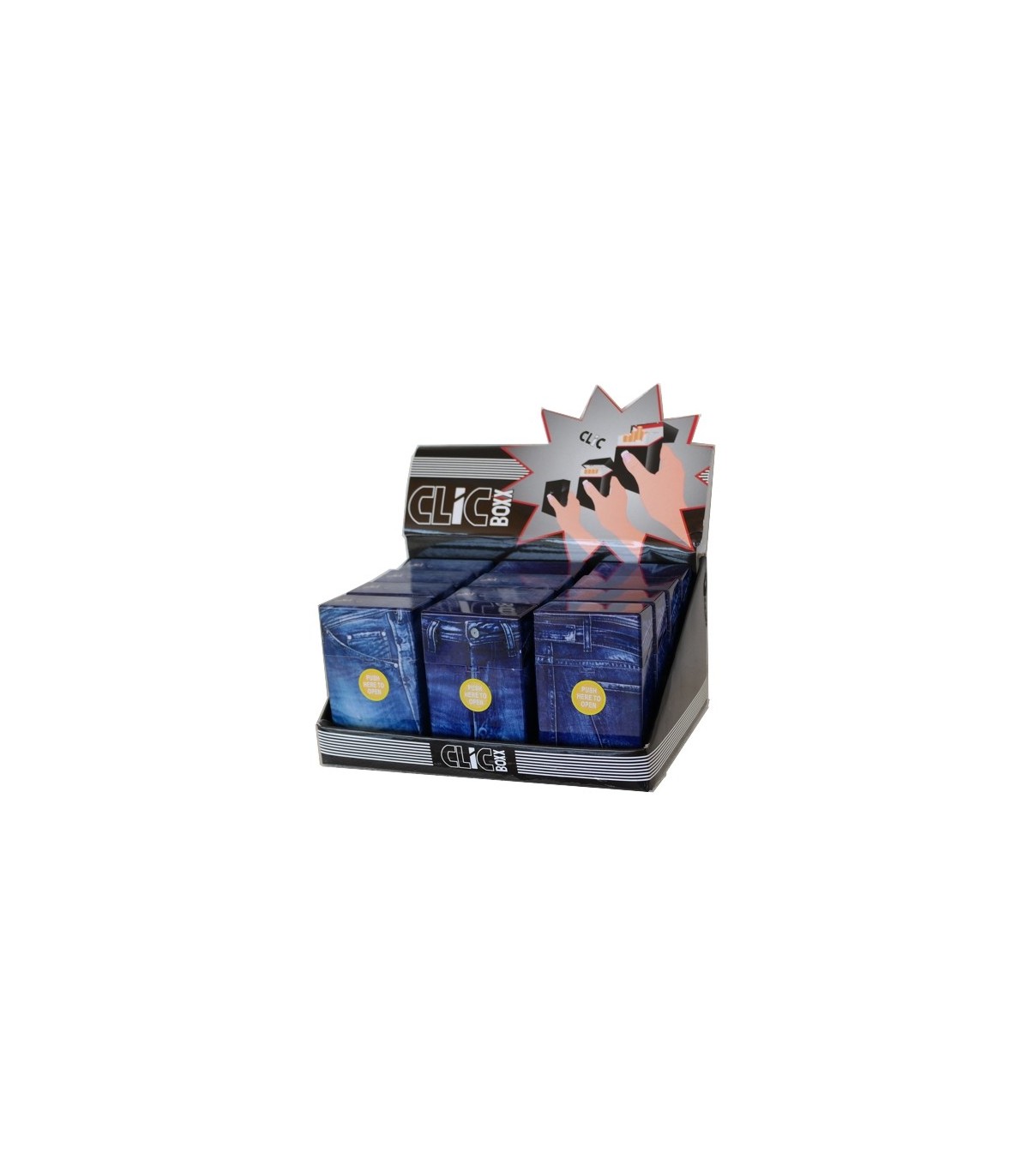 Κουτί με 12 πλαστικές θήκες CLIC BOXX Blue Jean για πακέτο 20 τσιγάρων 380210 (ανοίγει αυτόματα)