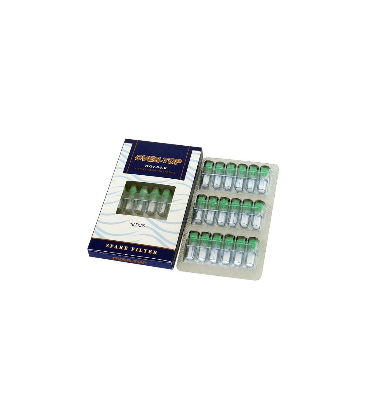 Τα ανταλλακτικά φίλτρα OVER TOP Holder SPARE FILTERS 0-27 είναι συμβατά με τις πίπες τσιγάρου Over Top με πλαστικό ανταλλακτικό. Η συσκευασία περιέχει 18 τεμάχια