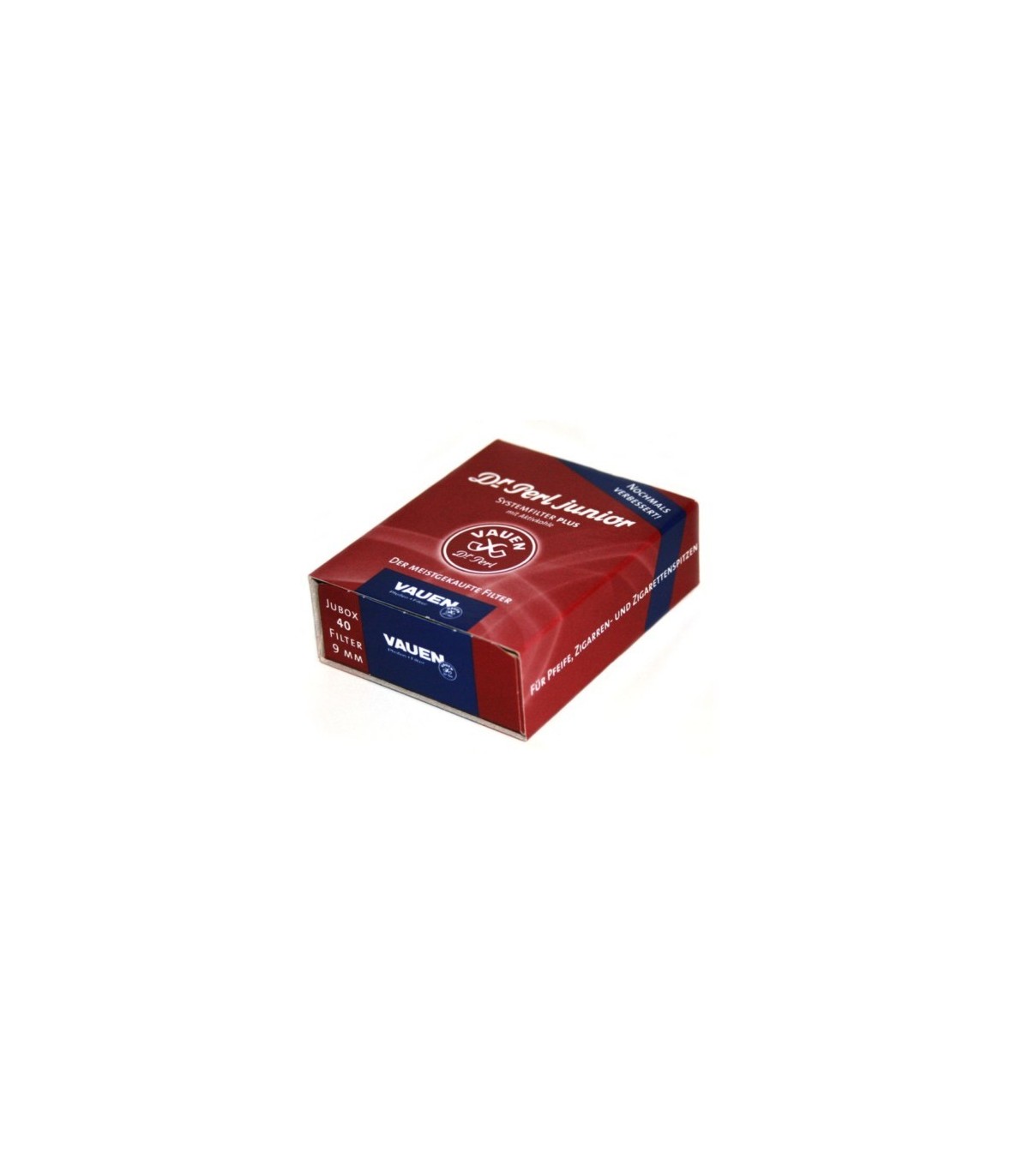 Τα φίλτρα πίπας καπνού ενεργού άνθρακα Vauen Dr Perl Junior 9mm 40, περιέχουν 40 φίλτρα και διαθέτουν το MIT SYSTEM που χωράει 5% περισσότερο ενεργό άνθρακα σε σε σχέση με τα υπόλοιπα φίλτρα. Αυτό επιτυγχάνεται με το δεύτερο πλαστικό καπάκι του φίλτρου το οποίο είναι σημαντικά λεπτότερο από το πρώτο κεραμικό καπάκι. Ο ενεργός άνθρακας που περιέχει κατασκευάζεται στη Γερμανία, όπως άλλωστε και όλο το φίλτρο.