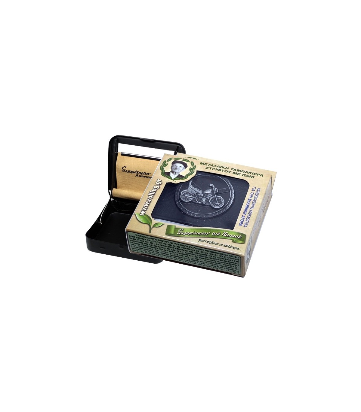 Η μηχανή στριφτού του παππού Rolling 47302-521 ΜΗΧΑΝΗ είναι μεταλλική ταμπακιέρα που μπορεί να στρίψει το αγαπημένο σας στριφτό, αλλά και να αποθηκεύσετε σε αυτήν καπνό ή τα σύνεργα σας. Διαθέτει υφασμάτινο πανάκι για καλύτερο αποτέλεσμα και είναι ιδανική για όλα τα στριφτά.