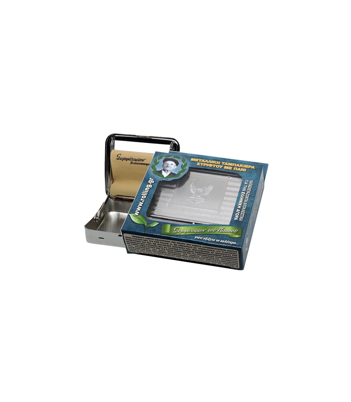 Η μηχανή στριφτού του παππού Rolling 47302-560 ΑΕΤΟΣ είναι μεταλλική ταμπακιέρα που μπορεί να στρίψει το αγαπημένο σας στριφτό, αλλά και να αποθηκεύσετε σε αυτήν καπνό ή τα σύνεργα σας. Διαθέτει υφασμάτινο πανάκι για καλύτερο αποτέλεσμα και είναι ιδανική για όλα τα στριφτά.