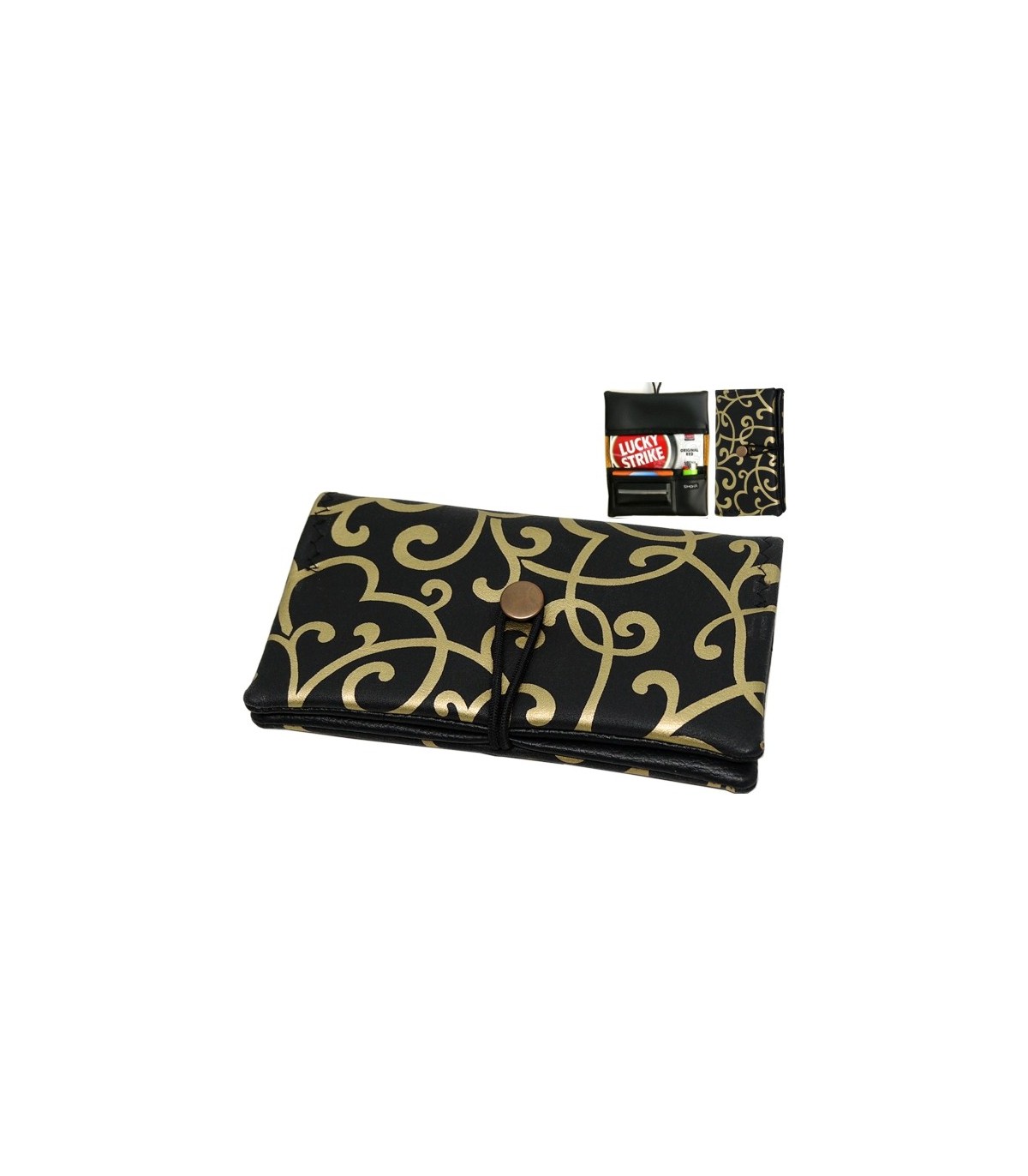 Η καπνοθήκη SIMONA 997 117 έχει χρώμα μαύρο με χρυσές γραμμές. Το πίσω μέρος της καπνοθήκης έχει ακριβώς τα ίδια σχέδια. Είναι κατασκευασμένη από τεχνόδερμα εξωτερικά και ύφασμα εσωτερικά. Μπορεί να δεχτεί μόνο σακουλάκι καπνού και διαθέτει θέσεις για χαρτάκια φιλτράκια και αναπτήρα. Κλείνει με ανθεκτικό λαστιχάκι.