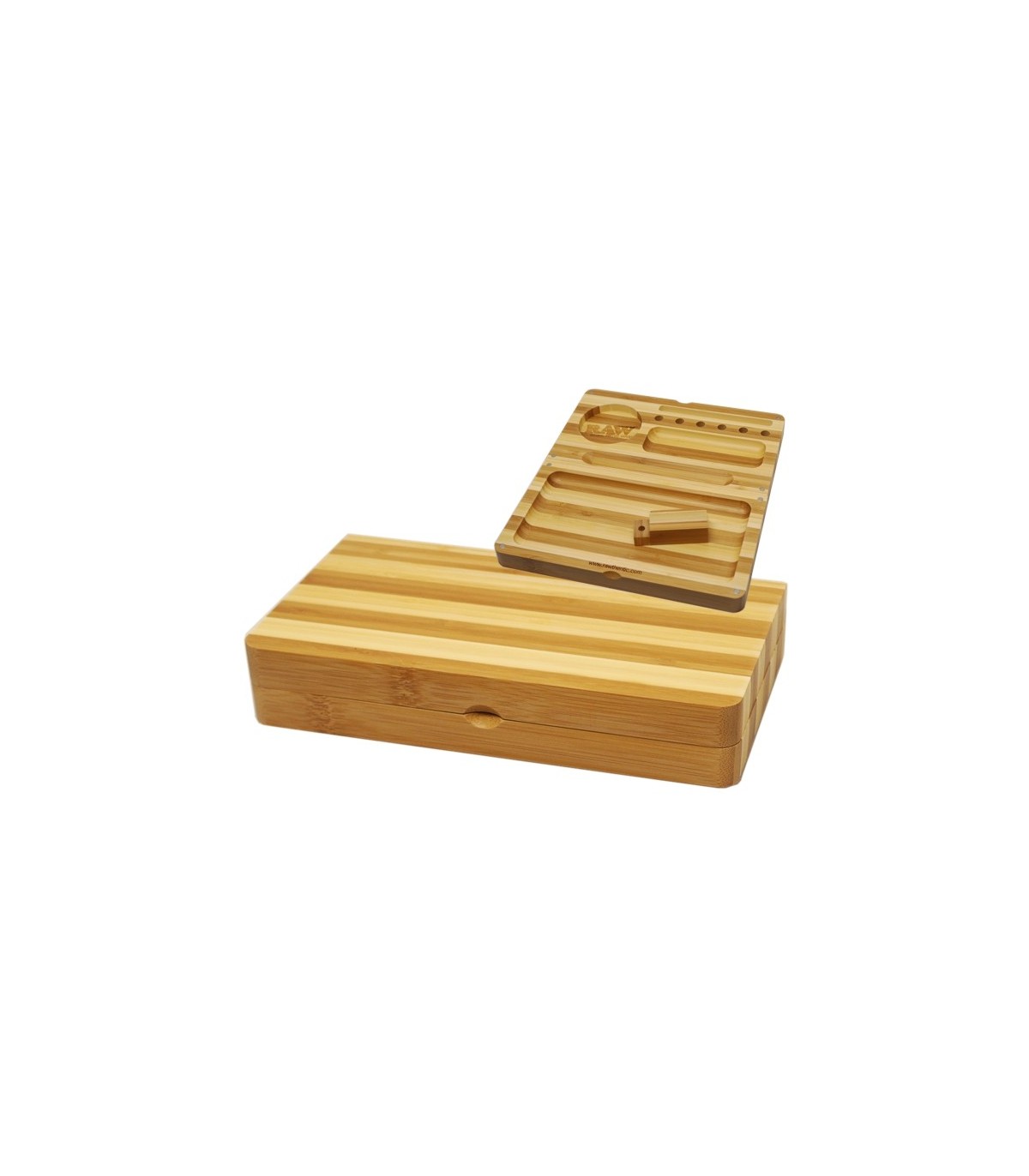 Το RAW BACKFLIP ROLLING TRAY STRIPED BAMBOO limited edition είναι ένα συλλεκτικο ξύλινο κουτί - δίσκος για να αποθηκεύσετε καπνο, και σας προσφέρει τη επιφάνεια εργασίας για να στρίψετε τα στριφτά σας τσιγάρα. Κλείνει με ισχυρούς μαγνήτες, έχει εργαλεία για χαρτάκια στριφτού και κώνους και γενικότερα θα σας λύσει τα χέρια σε ότι έχει να κάνει με το στρίψιμο.