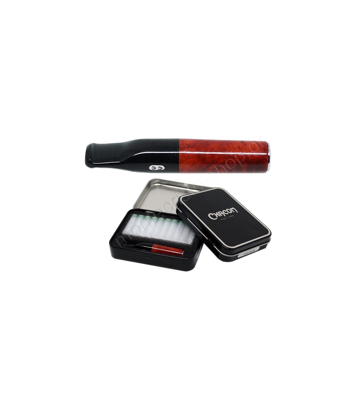 - Η συσκευασία είναι μεταλλική με καπάκι και περιέχει : μια πίπα CHACOM CC062 ORANGE και δέκα ανταλλακτικά φίλτρα.