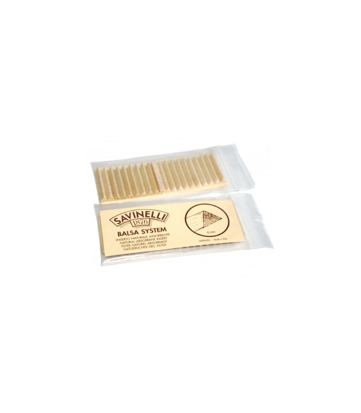 Τα φίλτρα για πίπα καπνού Savinelli 9mm Balsa 733 Pipe Filters απευθύνονται σε πίπες που δέχονται 6mm φίλτρο. Εξωτερικά θυμίζουν την "ψίχα" ενός καλαμιού. Είναι ελαφριά, πορώδες, κρατούν την υγρασία και όλα αυτά διατηρώντας την γεύση και το άρωμα του καπνού στην πραγματική του διάσταση. Με λίγα λόγια είναι ένα κομμάτι ξύλου που μπορεί να μην κατακρατεί τόσες βλαπτικές ουσίες όσο ο ενεργός άνθρακας, όμως το αποτέλεσμα θα είναι η ρεαλιστική απόδοση των αιθεριων ελαίων με τέτοιο τρόπο που θα σας εντυπωσιάσει. Θα τα συναντήσετε σε όλες τις πίπες Savinelli με διάμετρο φίλτρου 6mm.