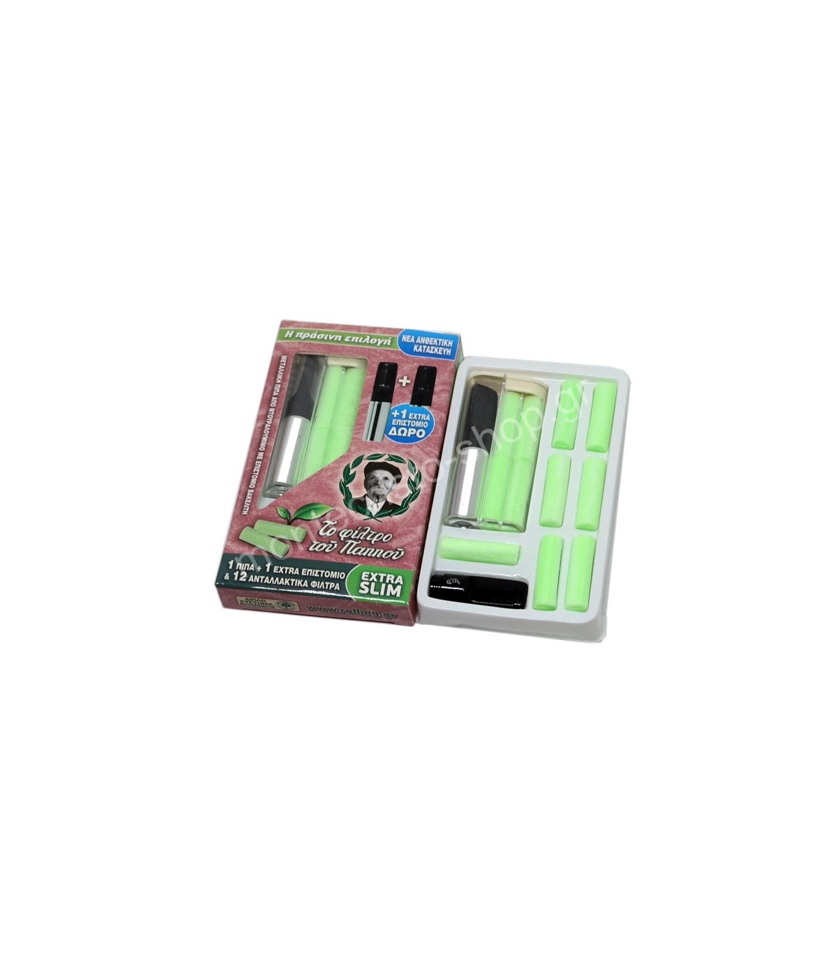 - Θήκη για 1 πίπα και 4 ανταλλακτικά πράσινα φίλτρα