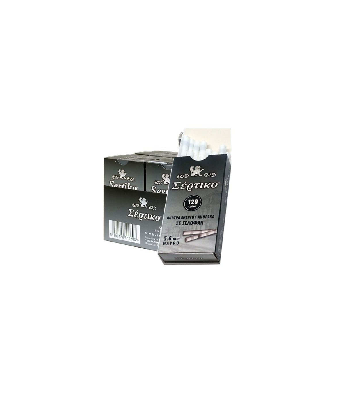 Τα φιλτράκια στριφτού ΣΕΡΤΙΚΟ ΜΑΥΡΟ 5.6mm ενεργού άνθρακα 120 Extra Slim σε σελοφάν 51081 περιέχουν ενεργό άνθρακα για καλύτερο φιλτράρισμα.
