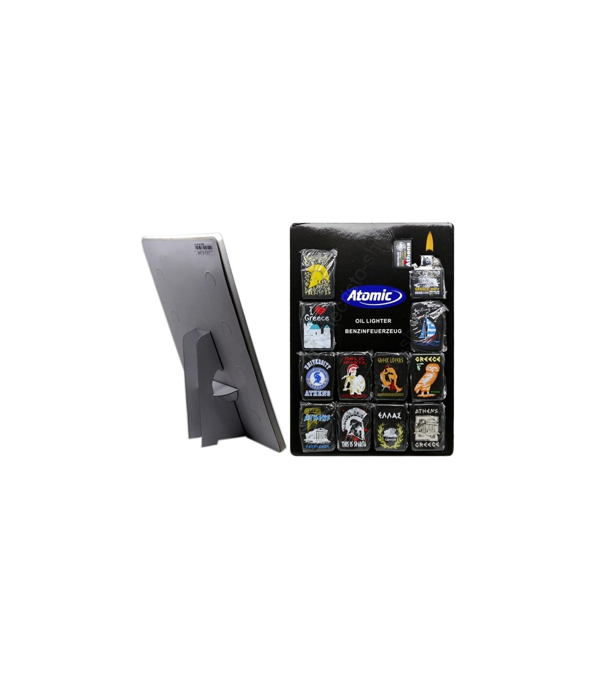 Οι τουριστικοί αναπτήρες ATHENS GREECE είναι μεταλλικοί με φιτίλι, ανάβουν με πέτρα και γεμίζουν με υγρό Zippo. Έχουν τις ίδιες διαστάσεις με έναν αναπτήρα Zippo και διαθέτουν ανάμικτα σχέδια σε καρτέλα των 12 τεμαχίων.