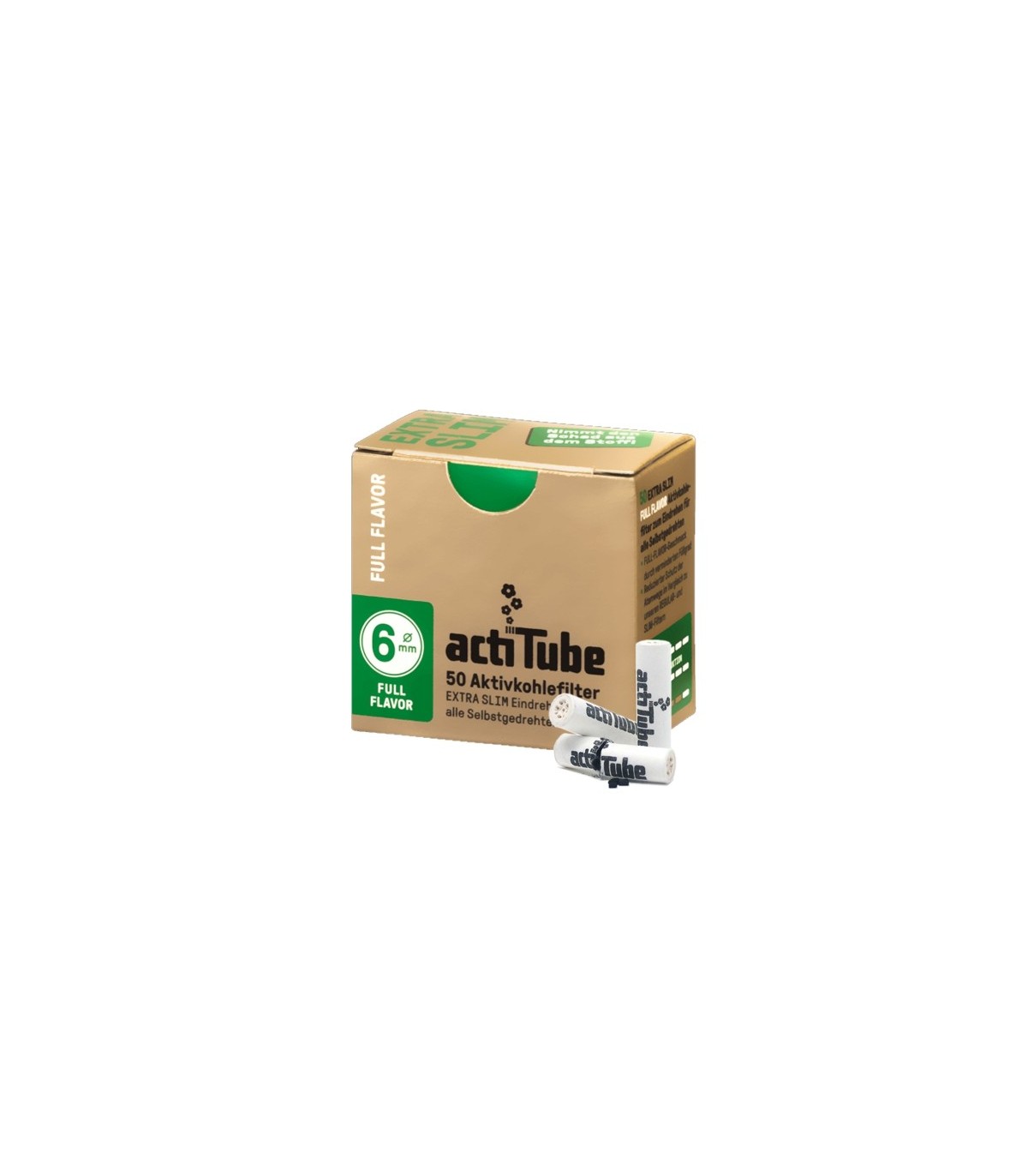 Το φιλτράκια στριφτού ενεργού άνθρακα actiTube 6mm Extra Slim 50 είναι ιδανικά για το στριφτό σας τσιγάρο. Μπορείτε εύκολα να τα ενσωματώσετε στο τσιγαρόχαρτο όπως τα κλασικά φιλτράκια και το ένα φίλτρο να το χρησιμοποιήσετε για 5 ή 10 τσιγάρα.