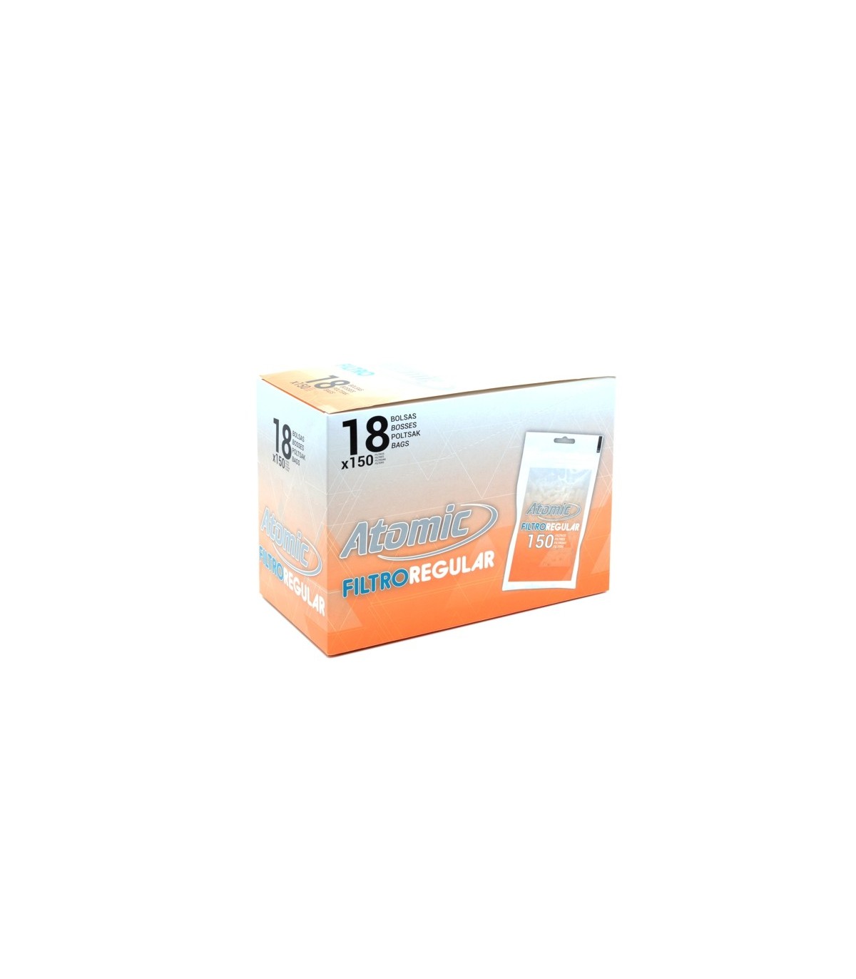 Τα φιλτράκια στριφτού Atomic FILTROREGULAR 8mm 150 έχουν κανονικό μέγεθος για κανονικό τσιγάροκαι περιέχονται σε σακουλάκι με 150 φίλτρα.