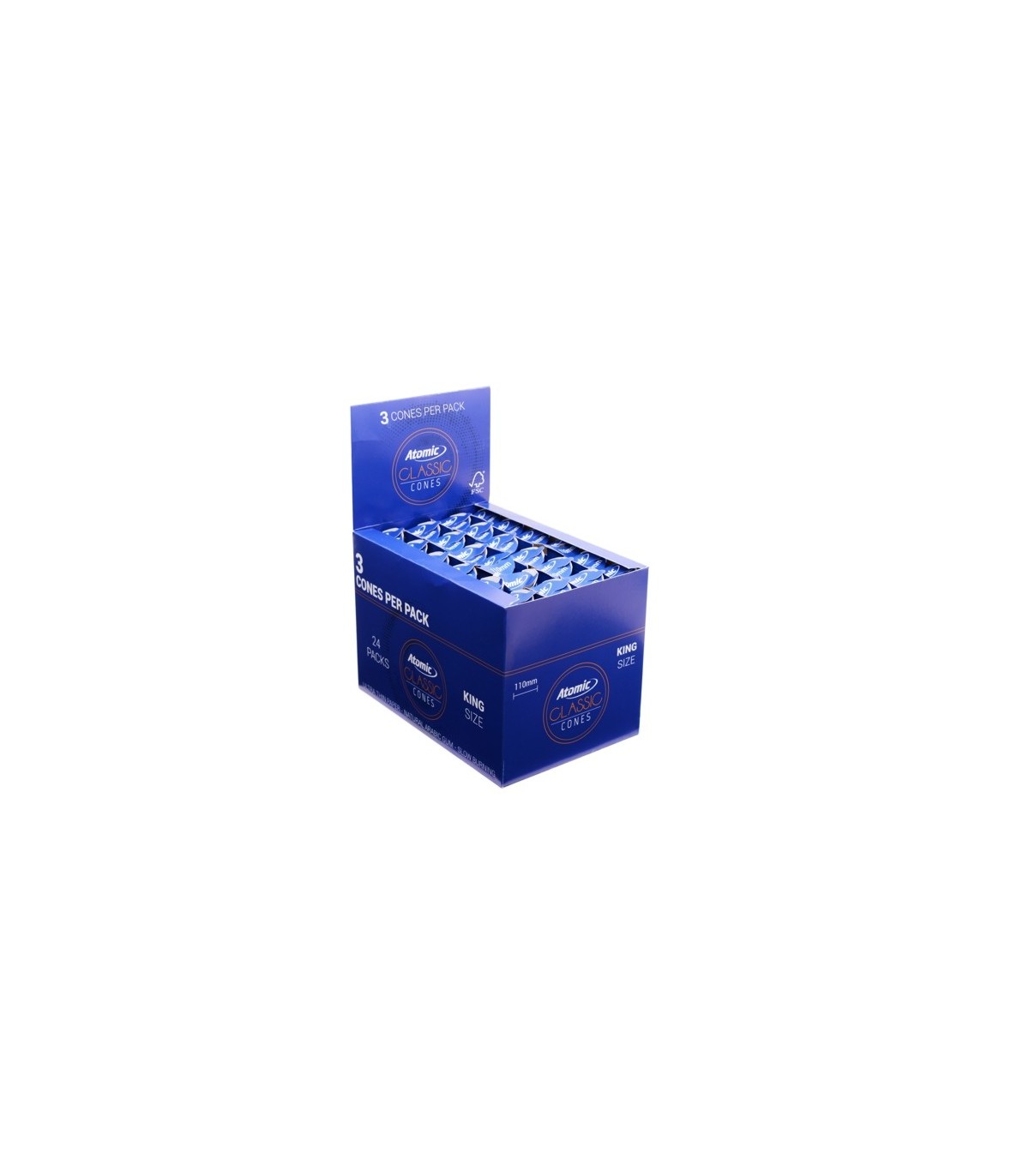 Οι κώνοι Atomic Classic Cones KS Ultra Thin 110mm είναι κατασκευασμένοι από ριζόχαρτο εξαιρετικά λεπτό χαρτί και διαθέτουν τζιβάνα στην άκρη τους. Το σχήμα τους είναι κωνικό και με το ειδικό μάκτρο μπορούμε να τοποθετήσουμε εύκολα και απλά τον καπνό της αρεσκείας μας. Λόγω του ότι διαθέτουν τζιβάνα και όχι φίλτρο αυτό σημαίνει ότι στην διάρκεια του καπνίσματος το μείγμα του καπνού που δεχόμαστε είναι εξαιρετικά πλούσιο και με όλη του την γεύση