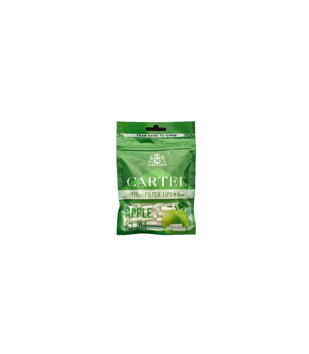 Τα αρωματικά φιλτράκια στριφτού Cartel APPLE SLIM 6.0mm έχουν υπέροχη γεύση και άρωμα μήλο σε διάσταση Slim. Περιέχονται σε σακουλάκι με 120 τεμάχια.
