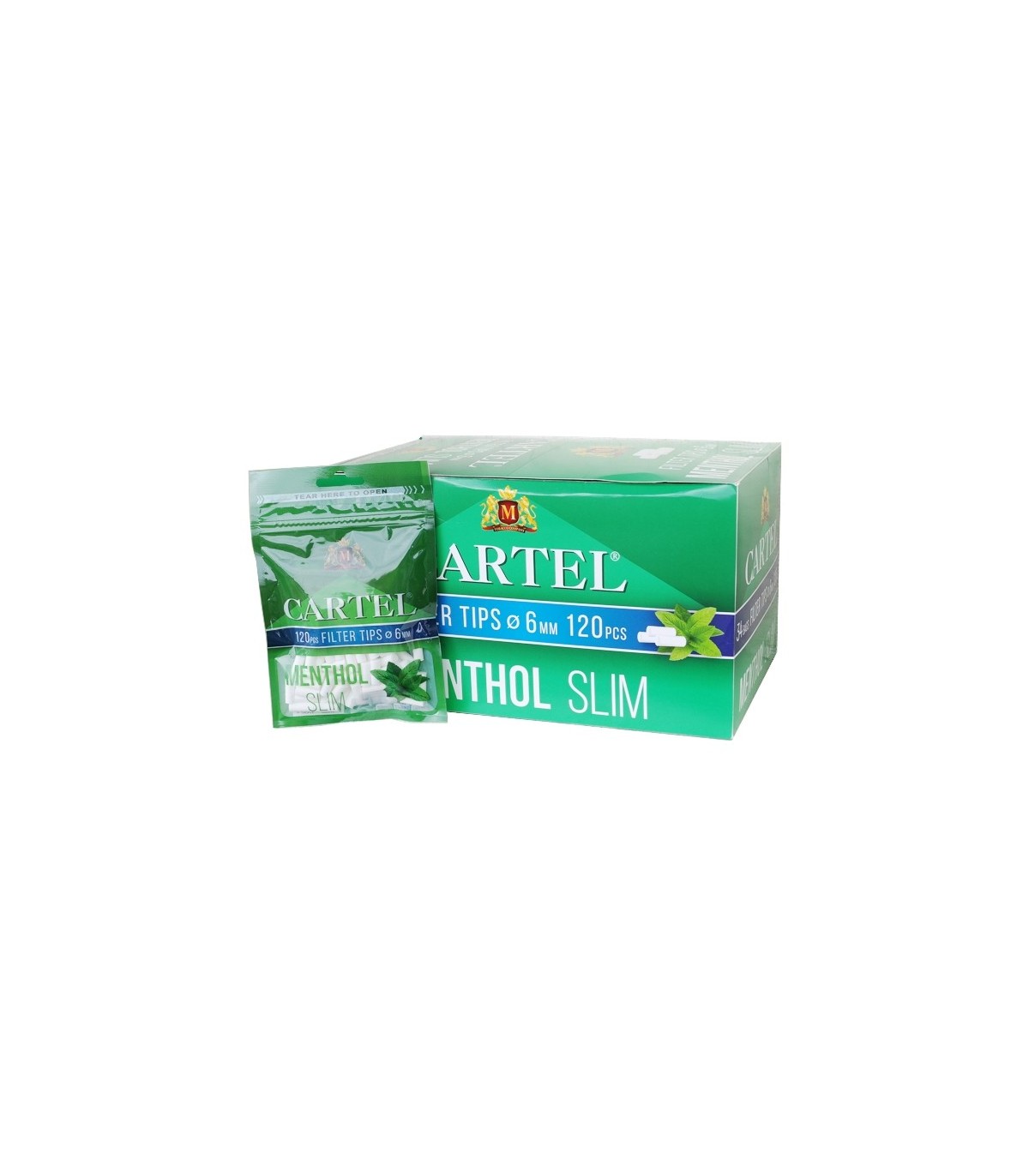 Τα φιλτράκια Cartel MENTHOL SLIM 6.0mm έχουν υπέροχη γεύση μέντας σε διάσταση Slim. Περιέχονται σε σακουλάκι με 120 τεμάχια