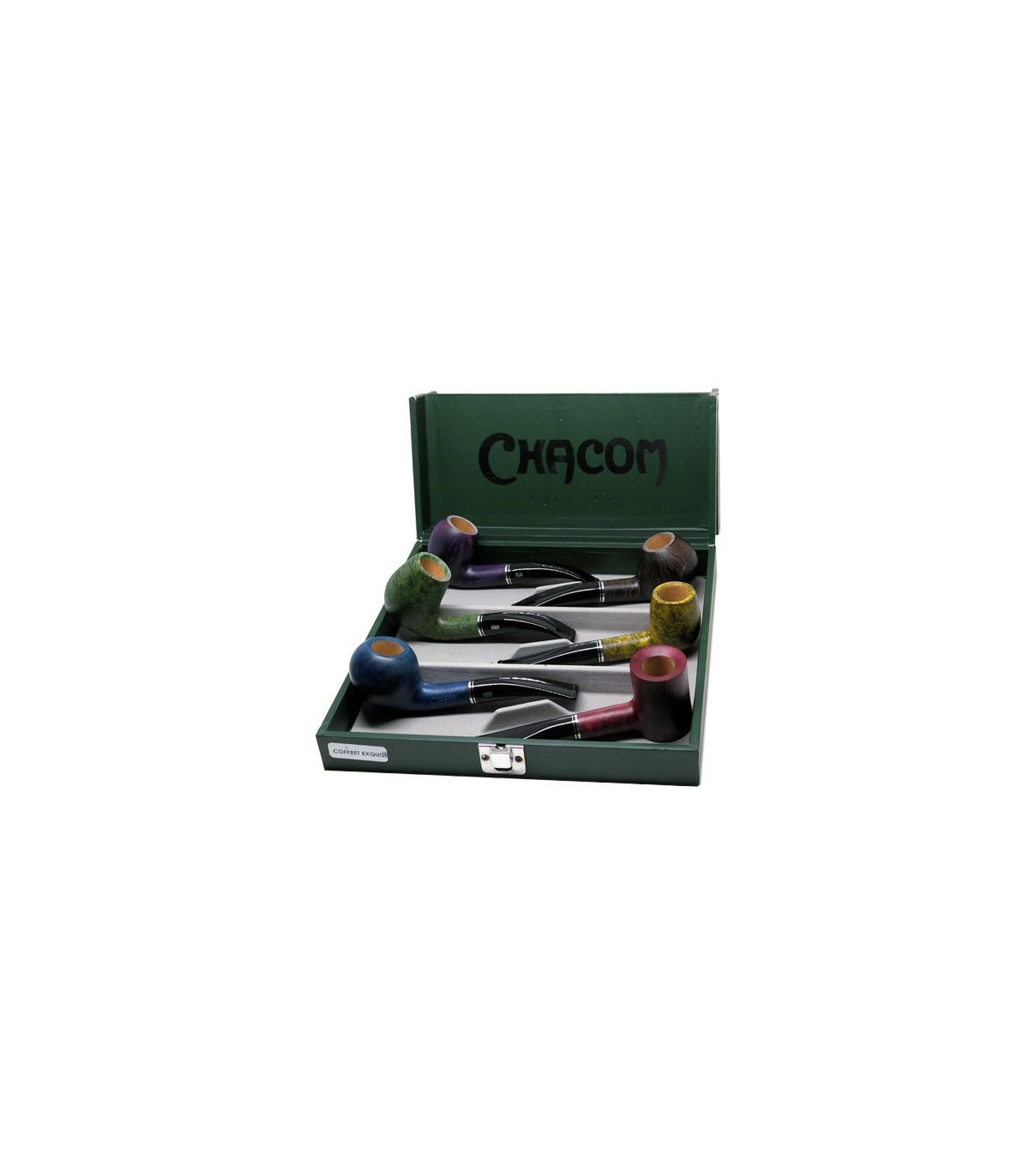 Το σετ με 6 πίπες καπνού CHACOM COFFRET EXQUISE διαθέτει πίπες από όλα τα σχήματα και χρώματα που κατασκευάζει το θρυλικό Γαλλικό εργοστάσιο και αποτελεί το ιδανικό δώρο για τον πιο απαιτητικό καπνιστή πίπας.