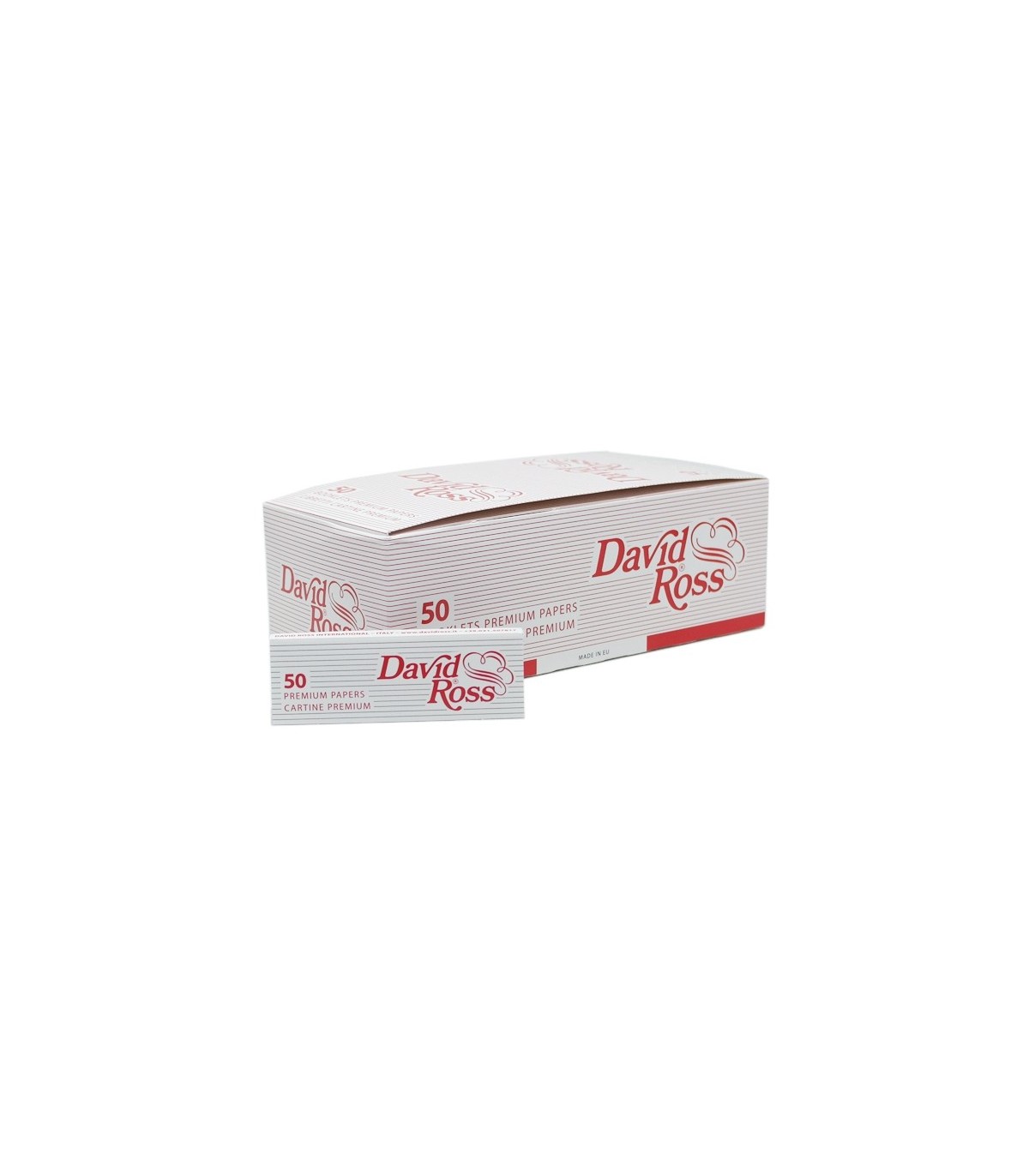 Τα χαρτάκια στριφτού David Ross Premium (red) έχουν κανονικό μικρό μέγεθος με πάχος 18.5 γρ/μ2. Το κάθε πακετάκι περιέχει 50 φύλλα με διαστάσεις 35mm x 70mm. κατασκευάζονται στην Ιταλία.