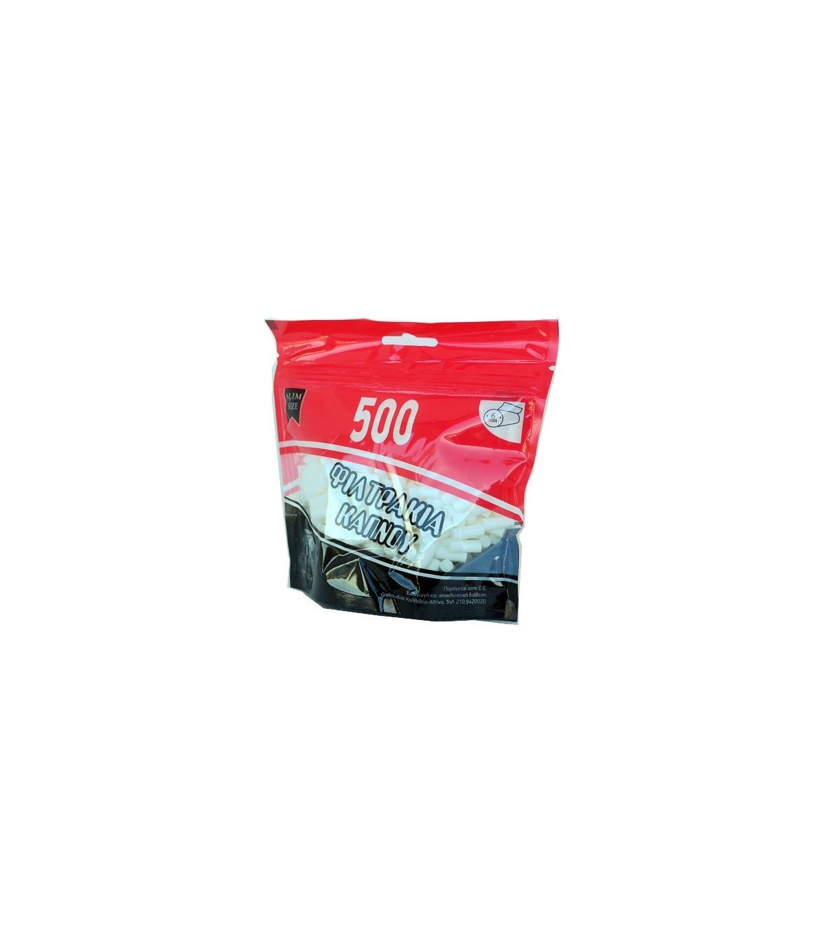 Τα Φιλτράκια στριφτού DELPH SLIM 6mm 500 περιέχονται σε πλαστικό σακουλάκι που περιέχει 500 φιλτράκια καπνού 6mm