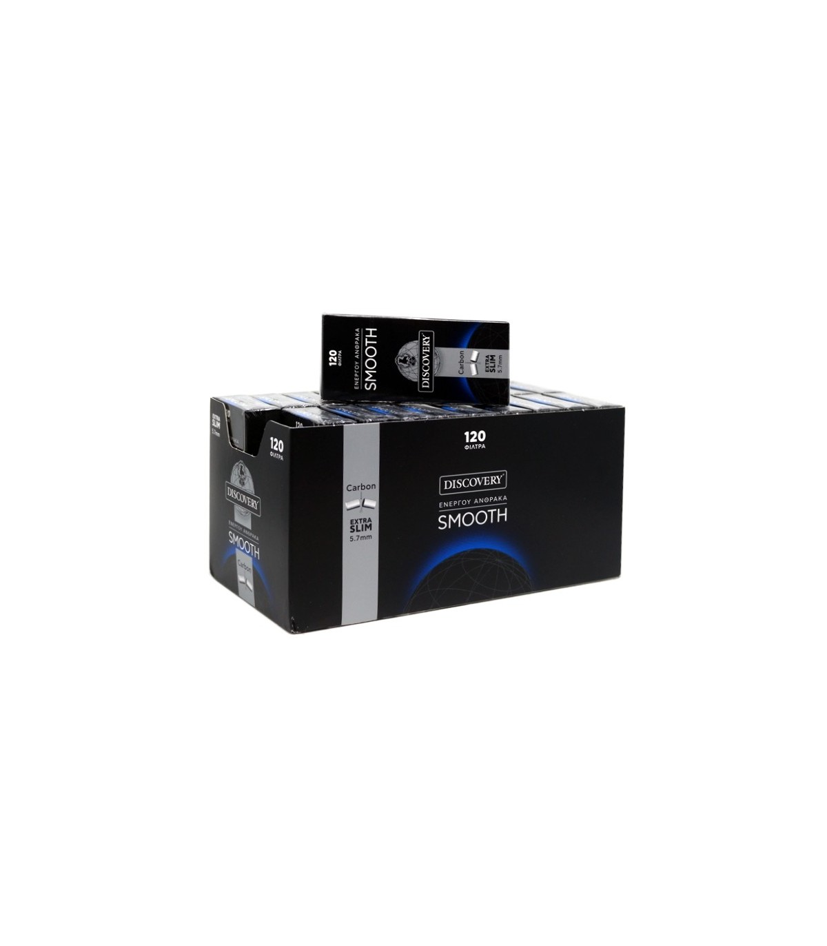 Συσκευασία με 20 πακετάκια φιλτράκια DISCOVERY SMOOTH ενεργού άνθρακα 5,7mm extra silm των 120