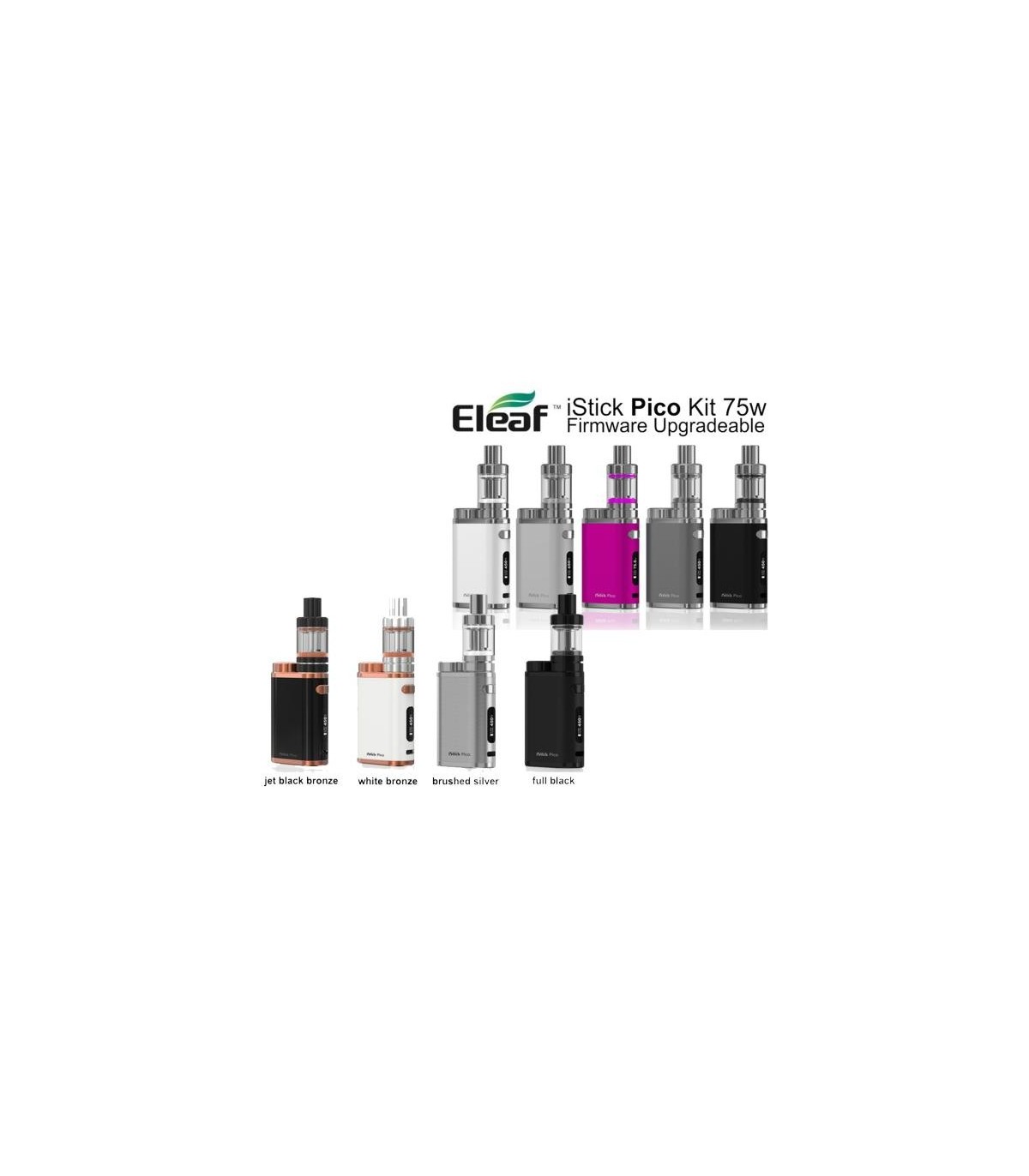 Το Eleaf iStick Pico Kit Firmware Upgradeable, - τώρα και σε τέσσερα νέα χρώματα : jet black bronze, white bronze, full black και brushed silver (μεταλλικό χρώμα) - είναι το νέο MOD που μπορεί να χτυπήσει μέχρι τα 75w. Παίρνει ενέργεια από μπαταρία 18650 η οποία δεν συμπεριλαμβάνεται στην συσκευασία. Διαθέτει τον νέο ατμοποιητή Melo III 2.0ml. Υπάρχει σε διάφορα χρώματα και μπορεί να συνεργαστεί με κεφαλές Ni, Ti και πολλές άλλες. Διαθέτει δυνατότητα εναλλαγής VW / Παράκαμψη / TC-Ni / TC-Ti / TC-SS / TCR.