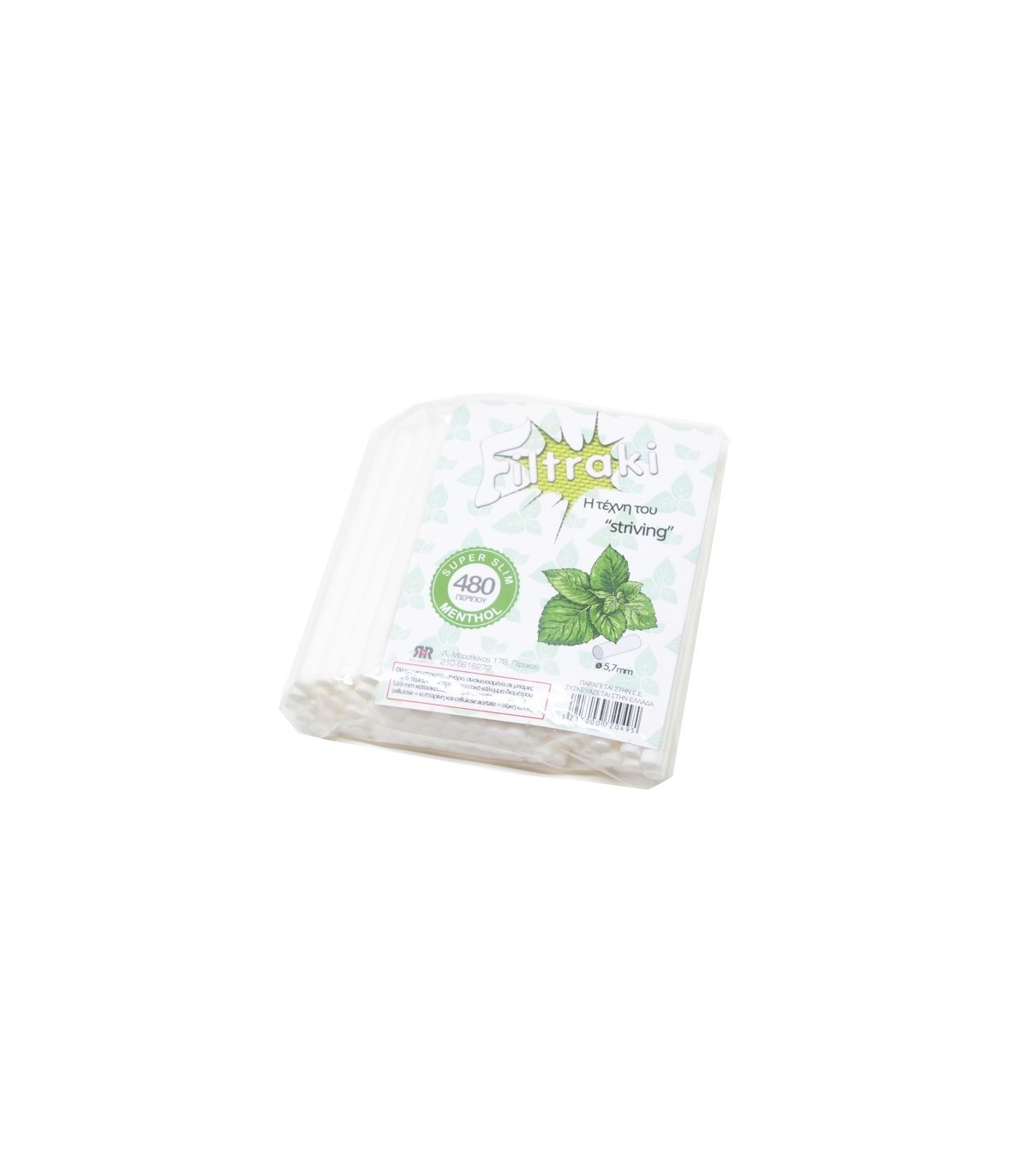 Τα φιλτράκια στριφτού FILTRAKI MENTHOL 480 SUPER SLIM 5.7mm διαθέτουν υπέροχο άρωμα μέντας, έχουν διάμετρο πολύ λεπτή, περιέχονται σε συσκευασία των 480 φίλτρων και τα φίλτρα είναι συσκευασμένα σε μπάρες ( σελοφαν ) των 6 τεμαχίων για καλύτερη χρηστικότητα.
