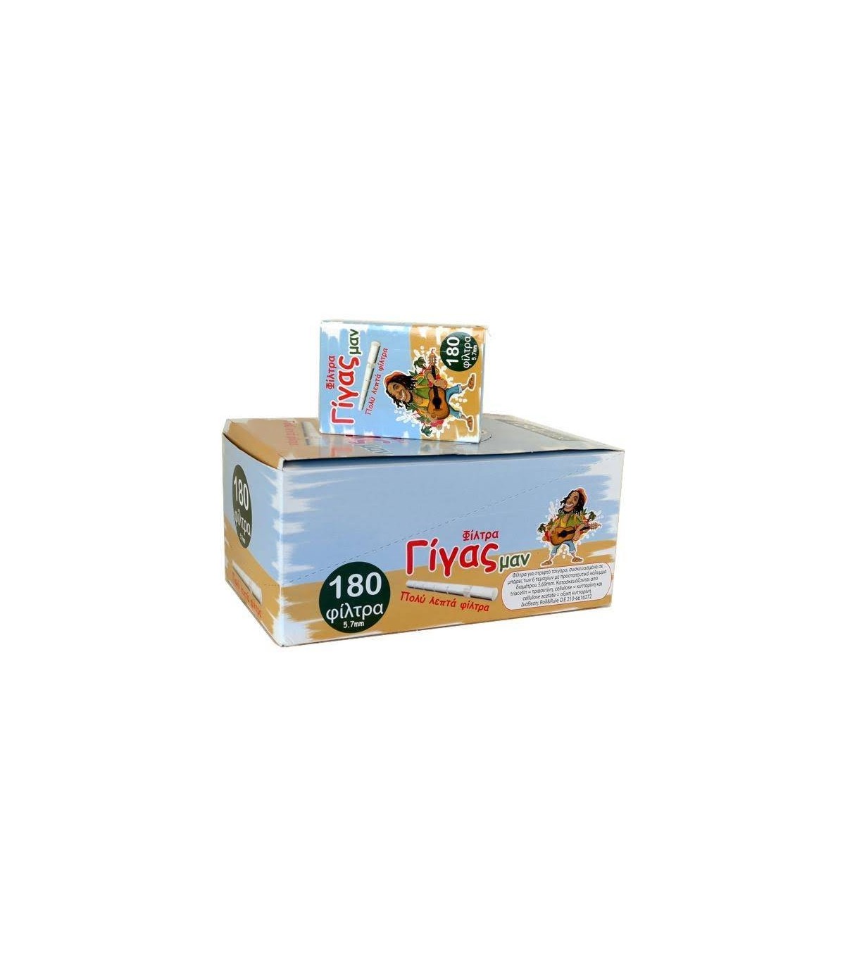 Κουτί με 20 πακετάκια φιλτράκια στριφτού ΓΙΓΑΣ ΜΑΝ extra slim 5.7mm με 180 φίλτρα by ROLL&RULE
