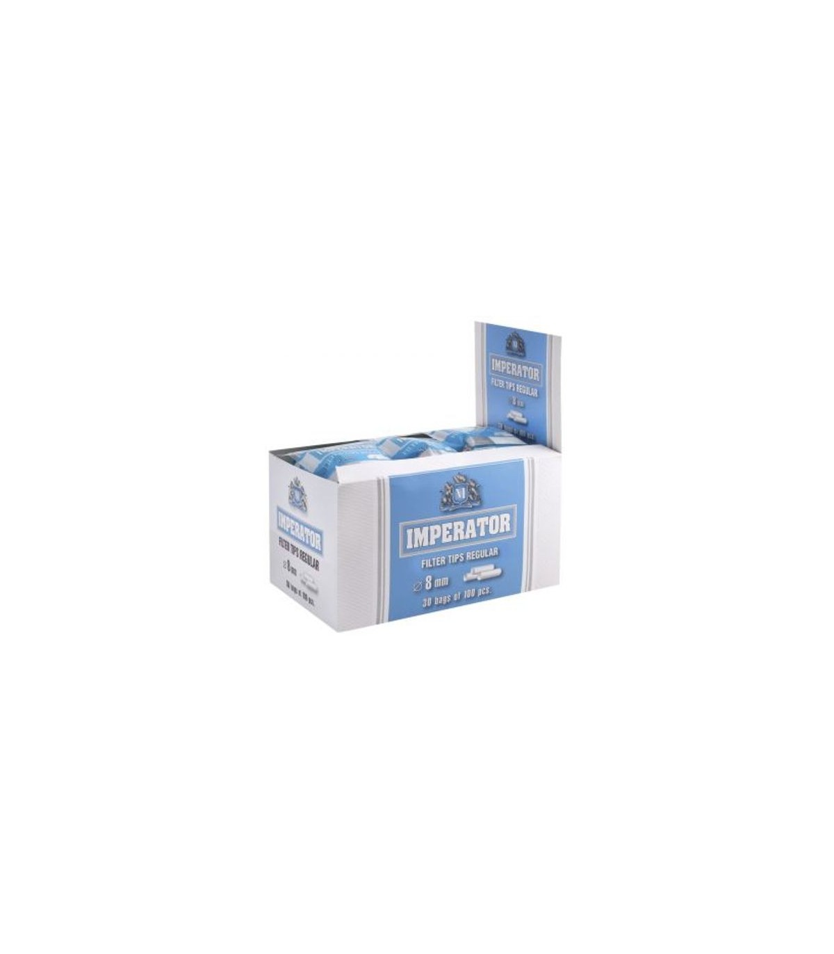 Τα φιλτράκια IMPERATOR regular 8mm είναι για κανονικό τσιγάρο, περιέχουν 100 φίλτρα και έχουν λίγο μακρύτερο μήκος από το κανονικό, δηλαδή 15mm. Επίσης το κάθε φιλτράκι IMPERATOR είναι τυλιγμένο με χαρτί για καλύτερο αποτέλεσμα και για λιγότερο κιτρίνισμα στα δάχτυλα.
