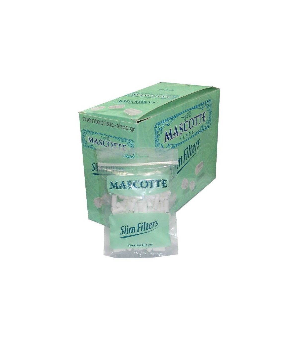 Τα φιλτράκια MASCOTTE slim filters είναι ερμητικά συσκευασμένα σε σακουλάκι με 120 φίλτρα. Το κάθε φίλτρο MASCOTTE είναι τυλιγμένο με ειδικό χαρτί που το κρατάει πιο στιβαρό κατά την διαδικασία του στριψίματος αλλά και επίσης λειτουργεί αποτρεπτικά στο κιτρίνισμα των δαχτύλων.